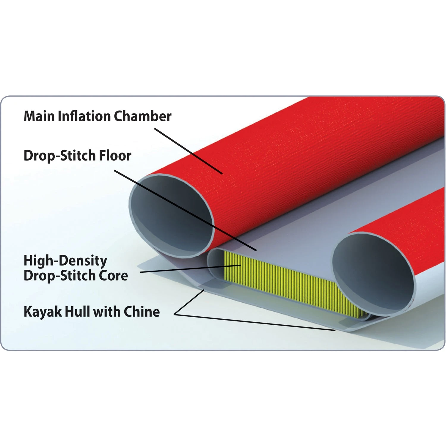 - Rigid drop-stitch floor creates a hull with chine, enhancing tracking and hull speed