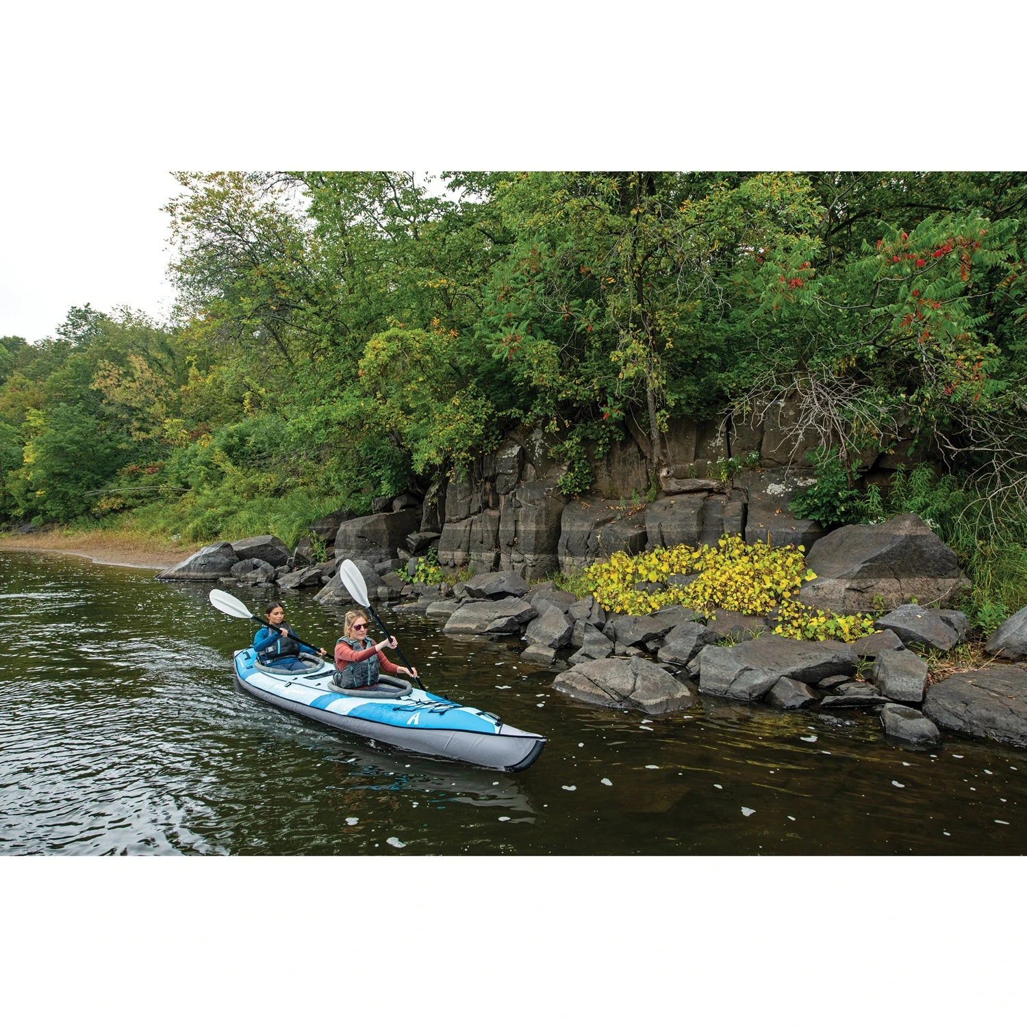 The Advanced Elements AdvancedFrame Convertible Elite SE Inflatable Kayak can be paddled solo or tandem, and open or closed deck. The design of this kayak combines a rigid bow and stern rib-frame design with a rigid drop-stitch floor to provide paddling performance that rivals a hard-shell kayak.
