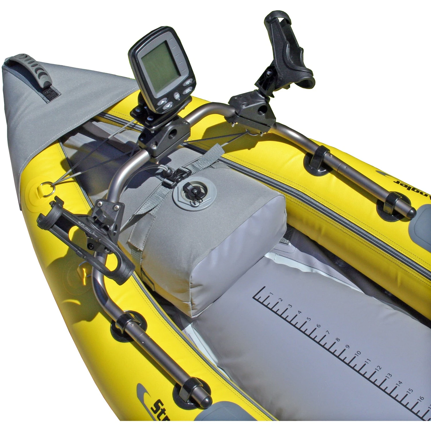 - Accessory mounting bar lets you mount aftermarket rod holders, fish finder and other equipment