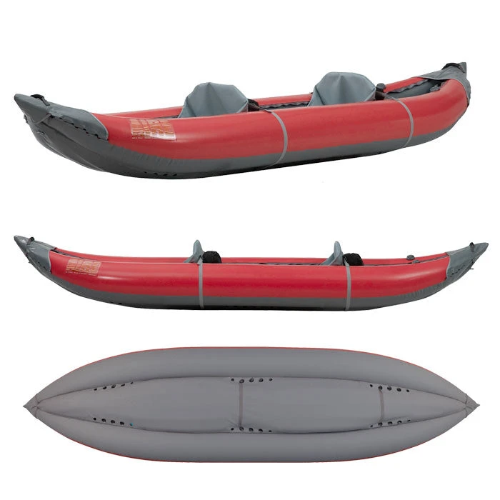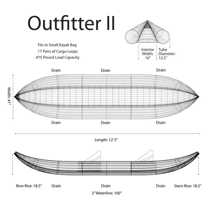 The Outfitter II Inflatable Kayak has increased diameter tubes and a low center of balance gives you confidence and boosting river running skills. This also makes it a great solo kayak for packing lots of gear and equipment. It rolls up small enough to stow in the trunk of a car and is quickly inflated.