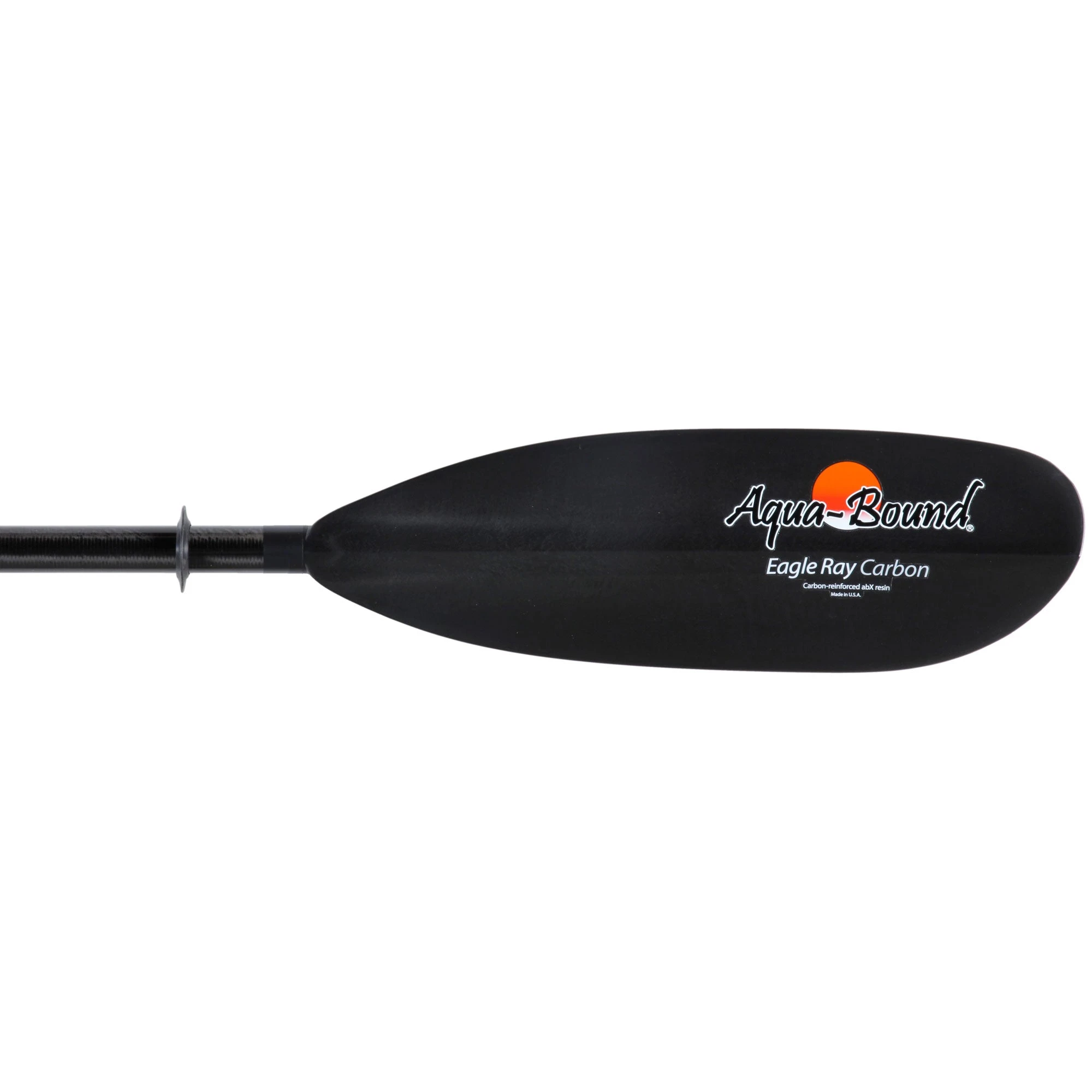 The Aqua Bound Eagle Ray Carbon 2-Piece Kayak Paddle is a first-class touring choice providing extra pull for low-angle paddlers and heavily-loaded boats. The Eagle Ray has extra-long low-angle blades that grab the water like a high-angle blade.