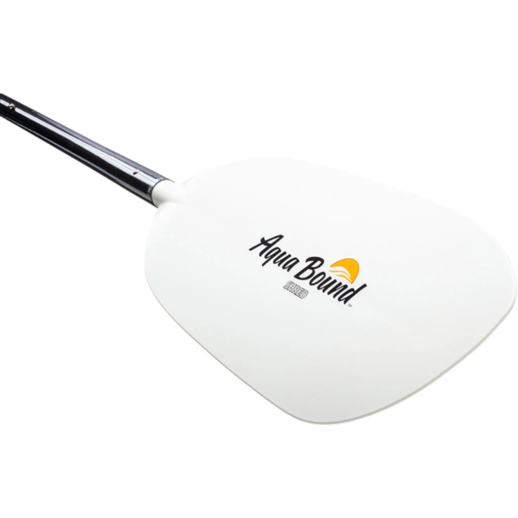 The Aqua Bound Shred Hybrid 4-piece Whitewater Kayak Paddle is a great mid-range choice. Mixing a carbon shaft with fiberglass blades resulting in high-performance durability, it provides the strength and power required for travel while maintaining flexibility and comfort.