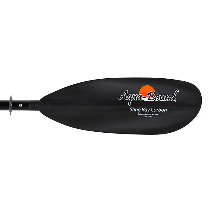 The Aqua-Bound Sting Ray Carbon 4-Piece Kayak Paddle will lighten your day, not your standards. A popular blade style for responsive paddling and all-around efficiency, the Sting Ray features a 100% carbon shaft and carbon-reinforced blades for superior performance with low swing weight.