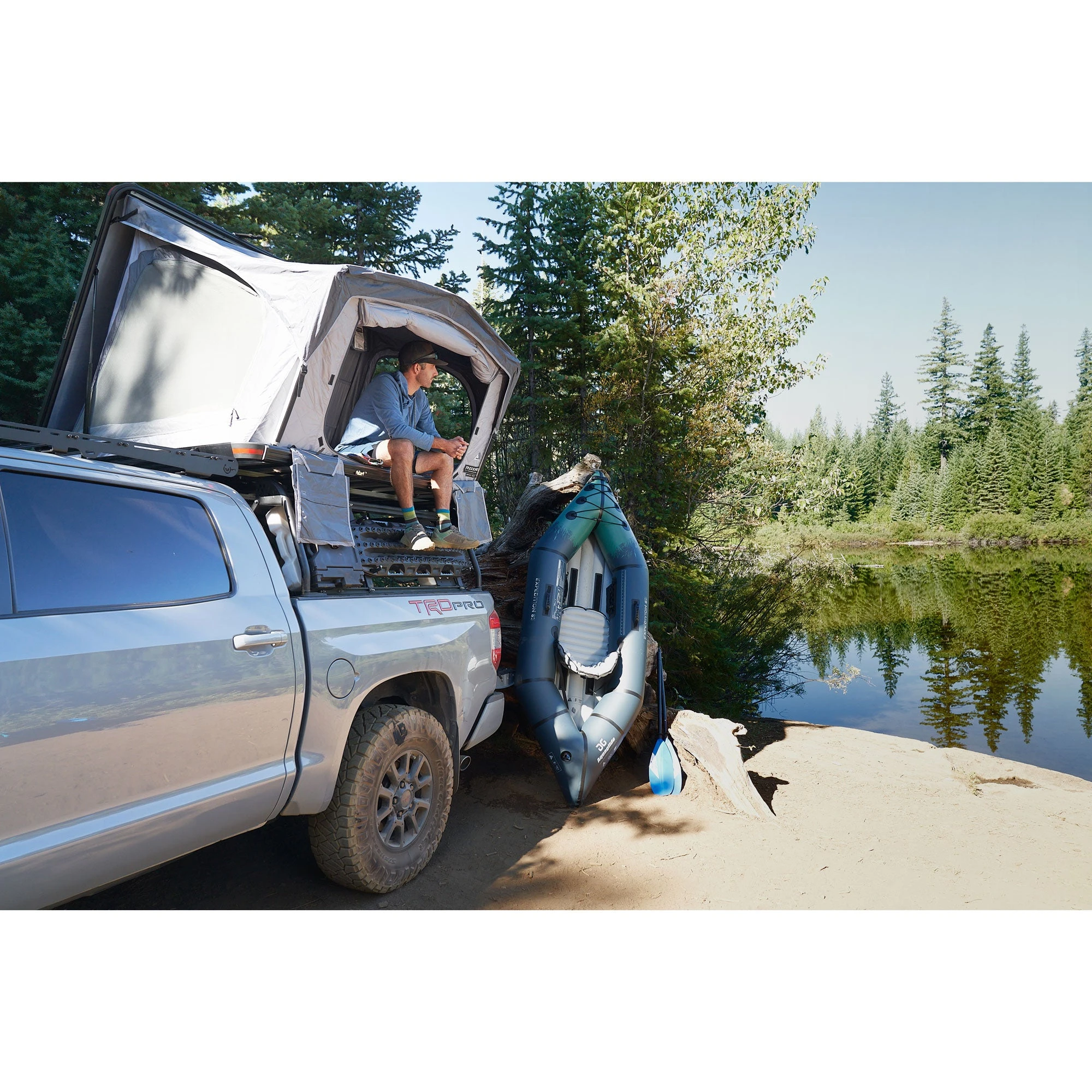 When your adventures involve paddling longer distances or carrying additional gear, the Aquaglide Blackwoods Expedition 85 ultralight inflatable kayak is a touring workhorse. This boat tracks straight, and carries gear like a pack mule, making it an ultralight remote trip-ready solo exploration kayak.