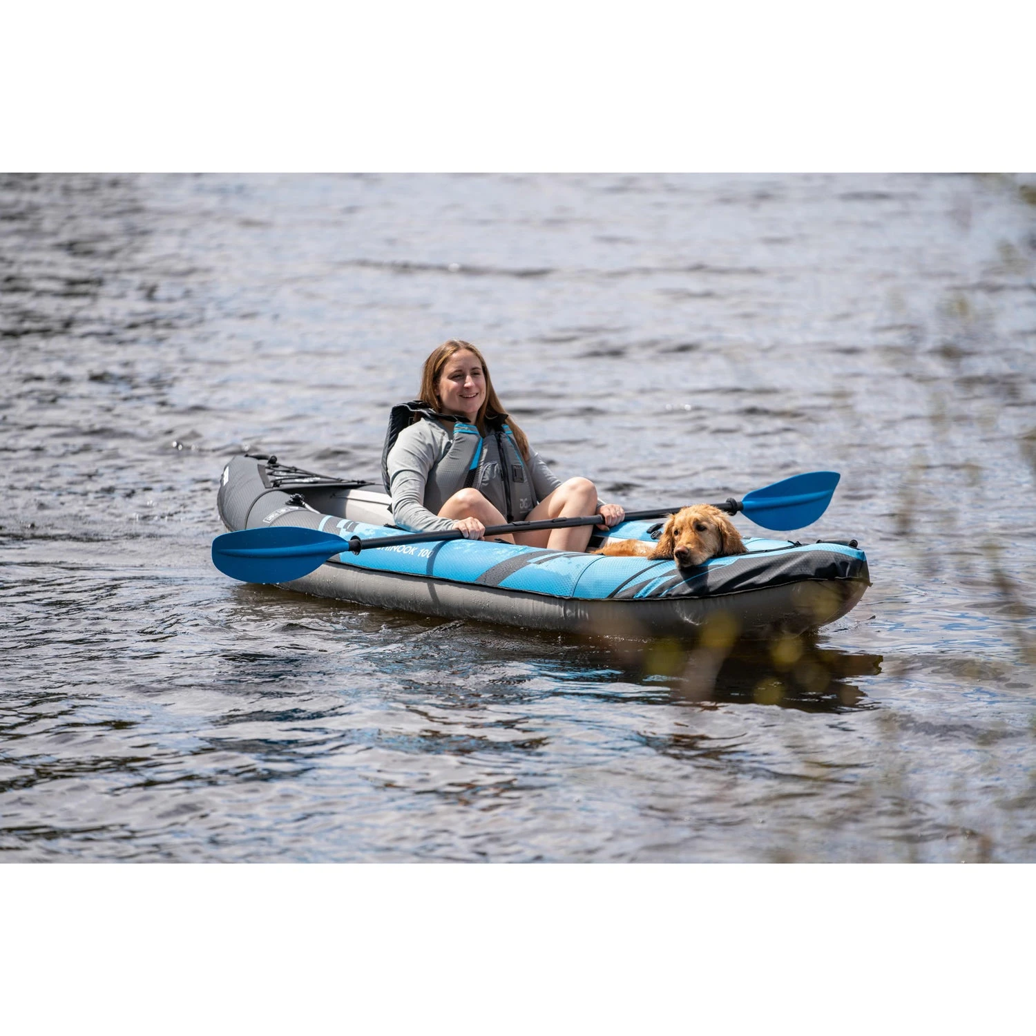 The Aquaglide Chinook 100 Inflatable Kayak is a versatile, affordable, and lightweight recreational kayak designed for one or two-person paddling on shorter trips and flat mellow water. With its compact 10-foot open bow layout, this kayak enables easy transitions in and out of the boat (and water).
