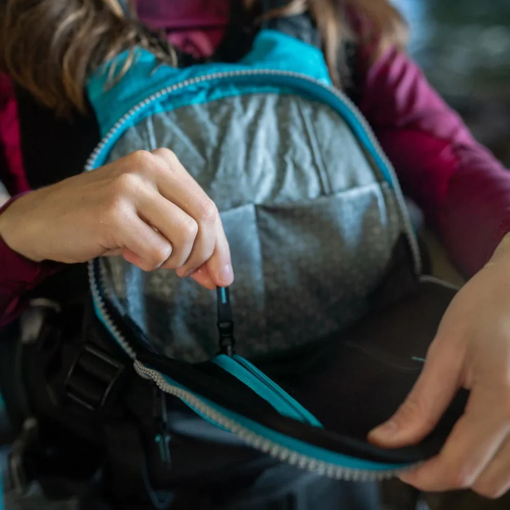 - Internal sleeve holds a hydration bladder and routes the hose to either shoulder (bladder not included)
