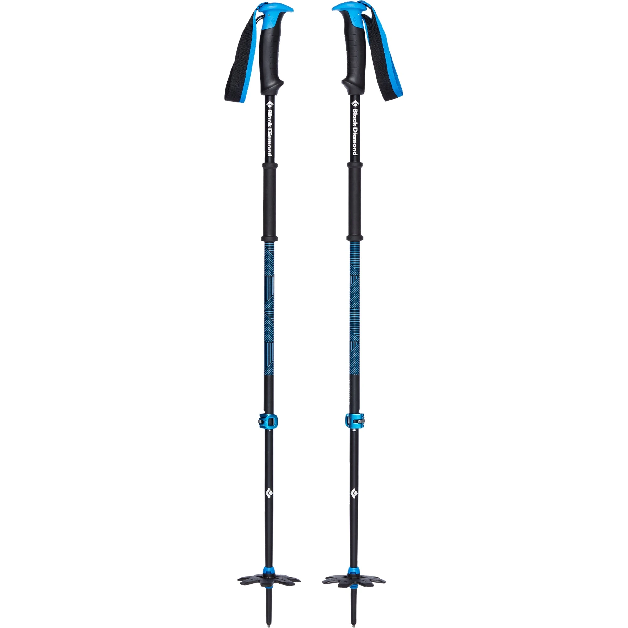 Classic ski touring poles with a pro-level feature set, the aluminum Black Diamond Traverse Pro Ski Poles feature FlickLock Pro adjustments, which are lighter, stronger and easier to use, and the innovative SwitchRelease wrist strap with a lockable release function.