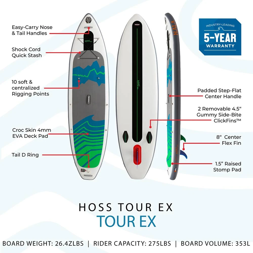The Hala Gear Hoss Tour Ex inflatable SUP board is the boss for tackling big adventures! Larger paddlers, those looking for great stability, and expeditionary go-getters will find adventure on this SUP in both flatwater and easy whitewater. The streamlined shape and Glide SUP Rocker profile provide maximum speed, and the wider width preserves stability, a hallmark of the Hala Hoss shape for almost a decade.