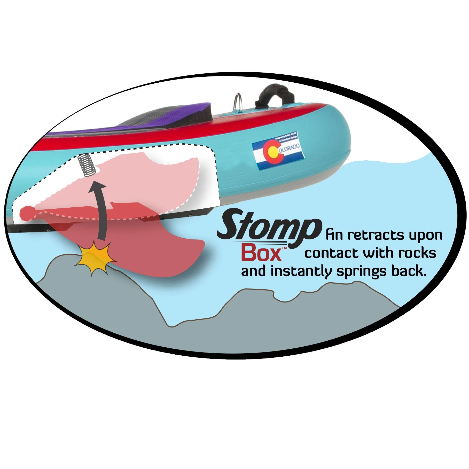 - Stompbox retractable center fin hides from shallow rocks