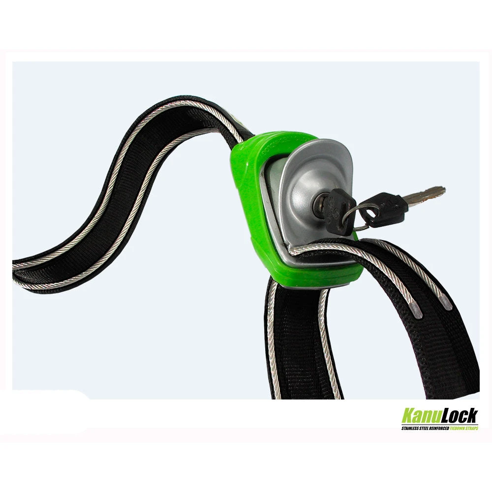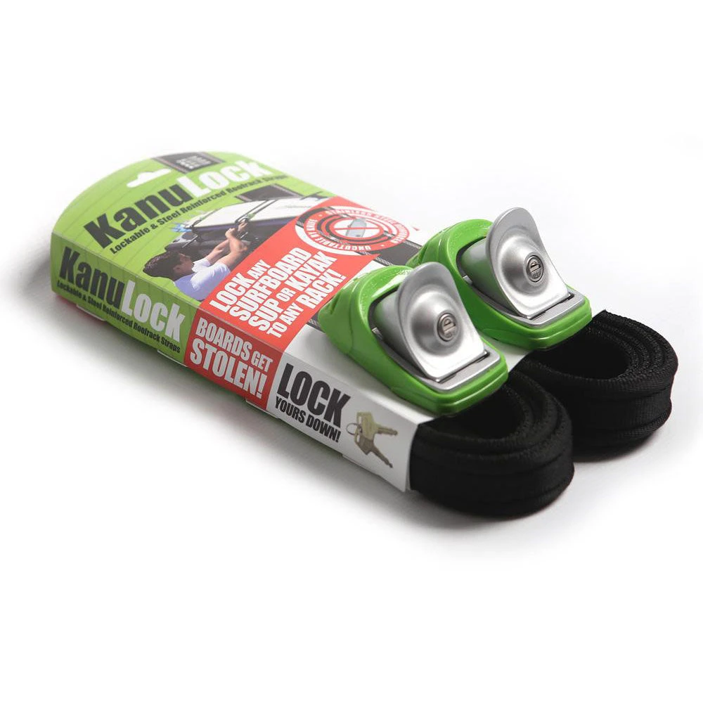 KanuLock locking tiedown straps help protect your board, SUP, or kayak from opportunistic theft. Simple to use, they work the same way as a regular set of tie-downs, with the added benefits of being able to lock and being uncuttable by knife. KanuLocks are a great theft deterrent.