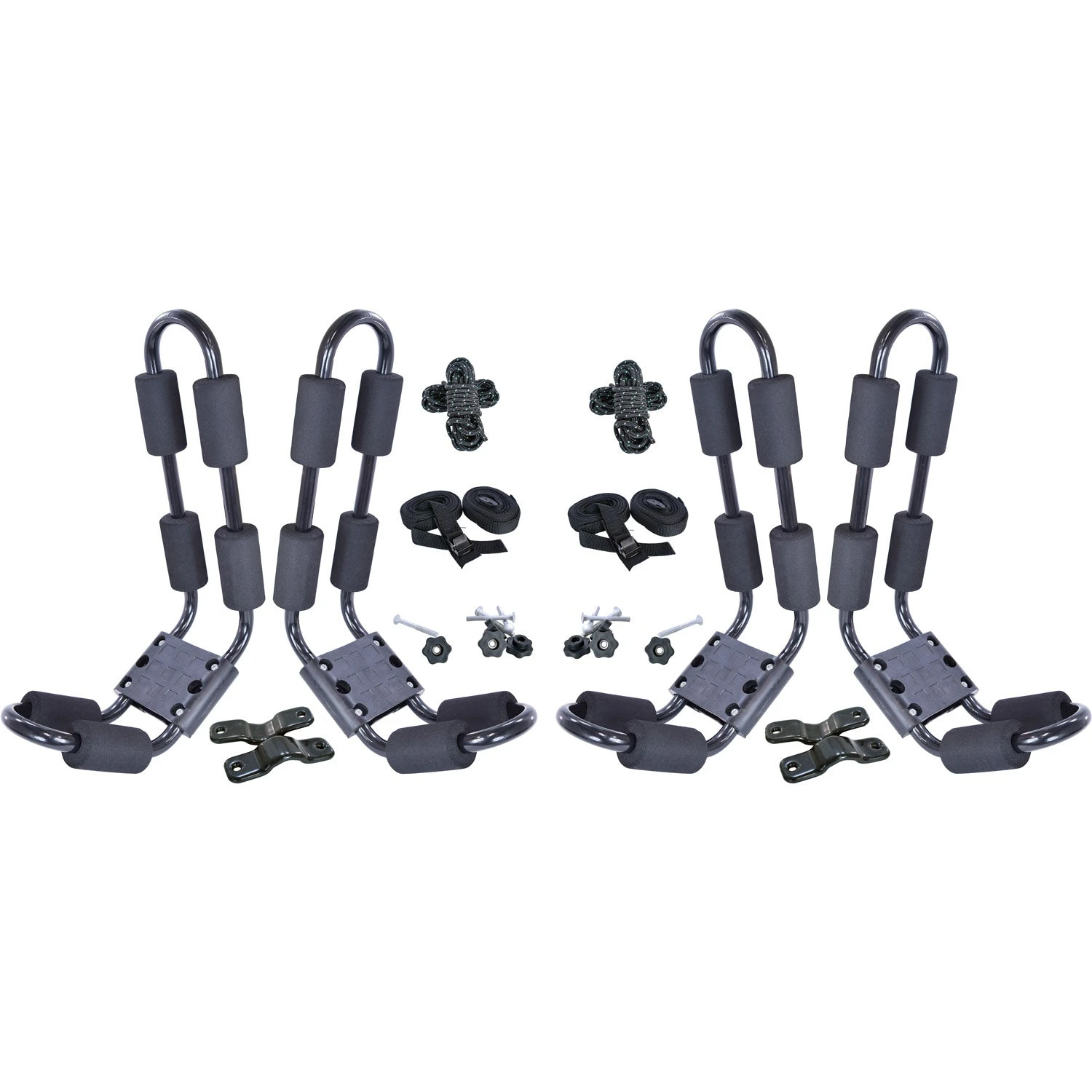 The Ecorack Kayak Carrier 2-Pack is the answer for paddlers who want safe secure transport in an affordable package. These J-rack carriers easily handle most sit-inside and sit-on-top kayaks. The Ecorack include a universal fit hardware package fits nearly all cross bars styles, includes tiedowns for your boats.