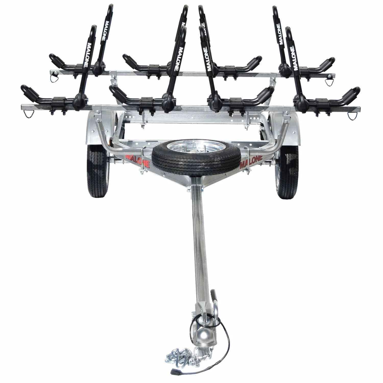 You can bring the whole family thanks to this Malone MicroSport trailer package with four FoldAway-J carriers. Easy to assemble and use, each kit comes with detailed instructions and pre-fitted electrical, mechanical, and hub assemblies. Carry your kayak safely, securely, and hassle-free.