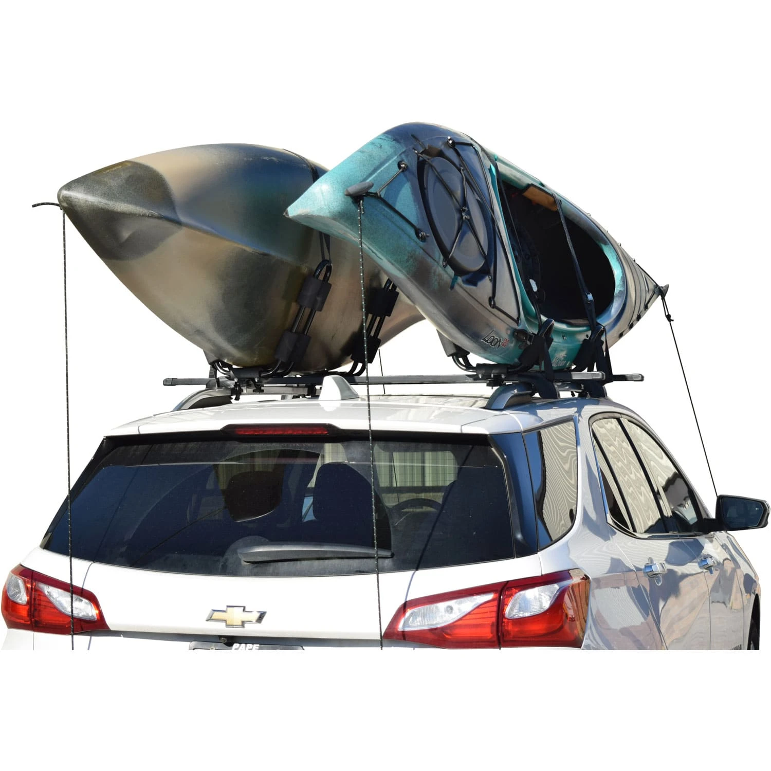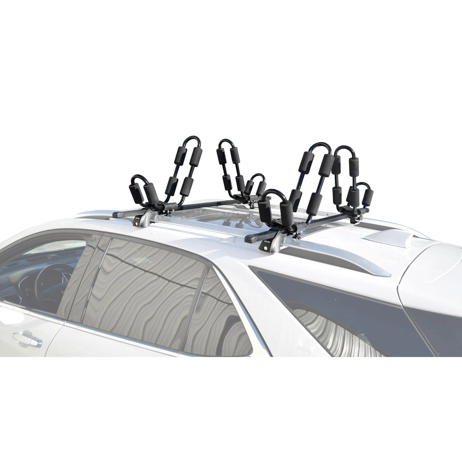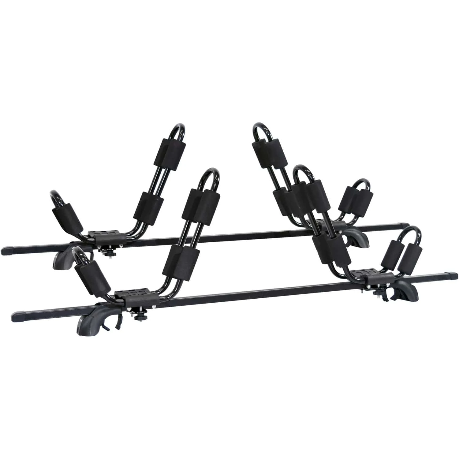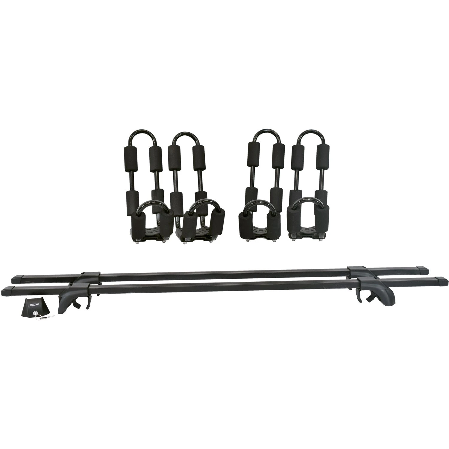 A complete Malone SteelTop Universal Crossbars with 2 J-Carriers pack offering maximum durability & affordability for two boats on bare roof vehicles.