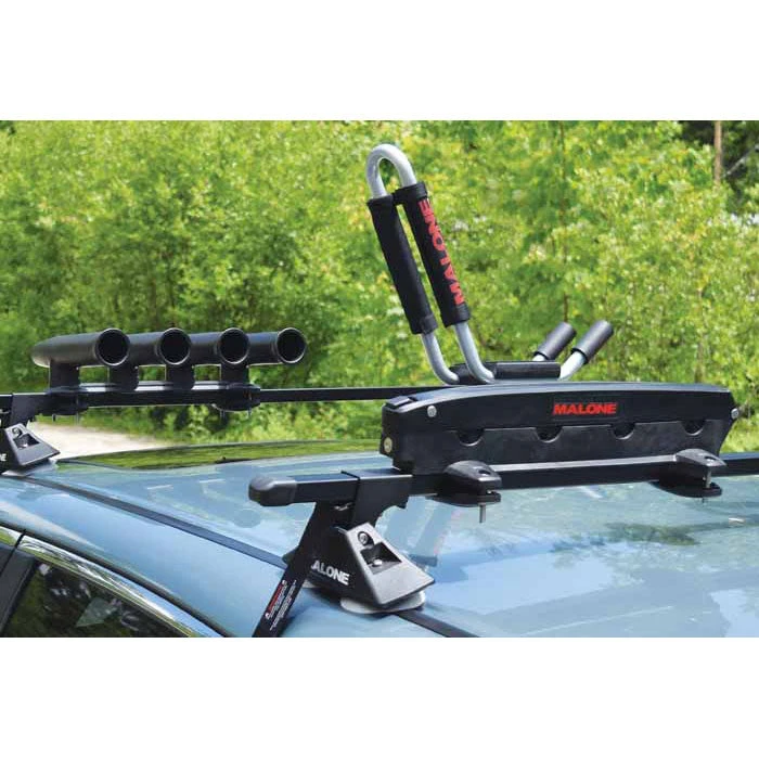 The Malone Striper-4 Fishing Rod Carrier safely carries up to four large spinning rod & reels and conveniently mounts to most roof racks. The Ratchet Style Paddle & Mast Carrier comes complete with universal fit hardware and is fully padded to protect and avoid road abrasion.