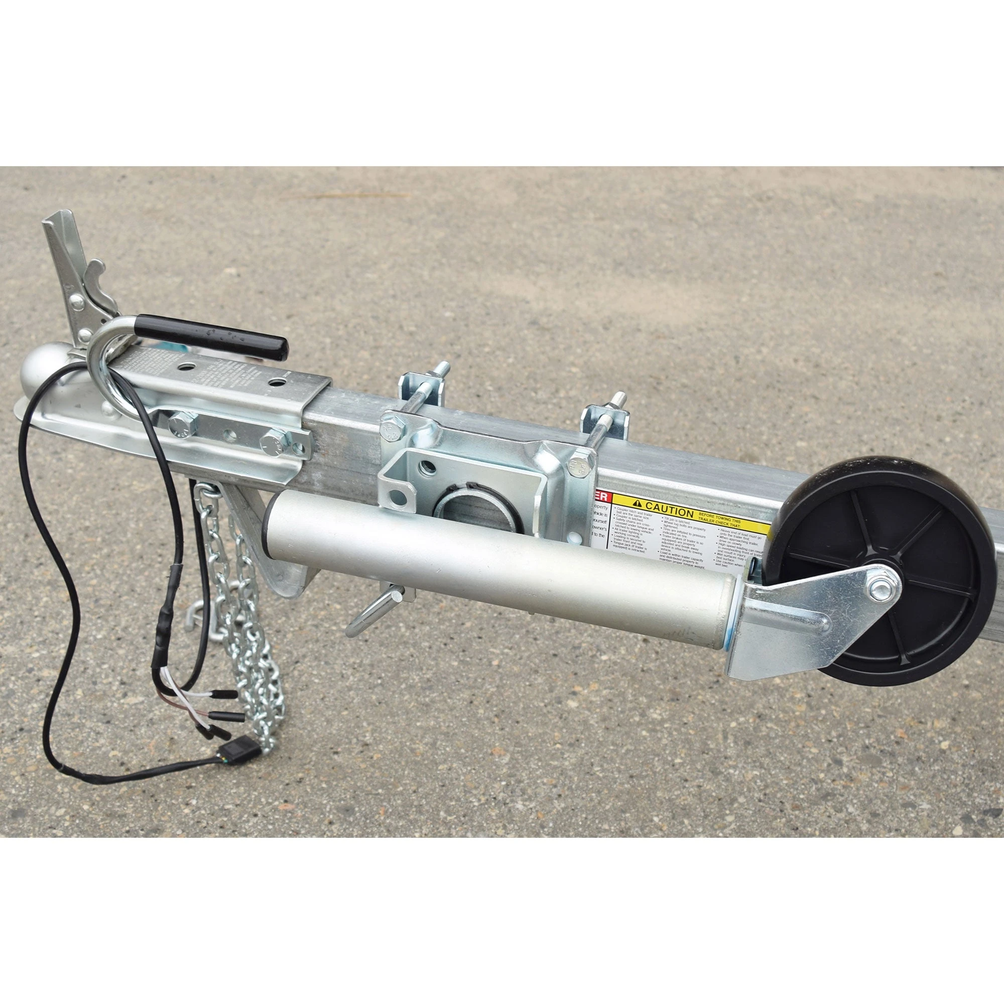 Replace your standard tongue skid plate with the Malone Trailer Tongue Kick Stand. The Kick Stand keeps your trailer level when unhitched and makes it easier to connect to the tow vehicle. A large integrated wheel allows the trailer to be easily rolled to the desired location by hand.