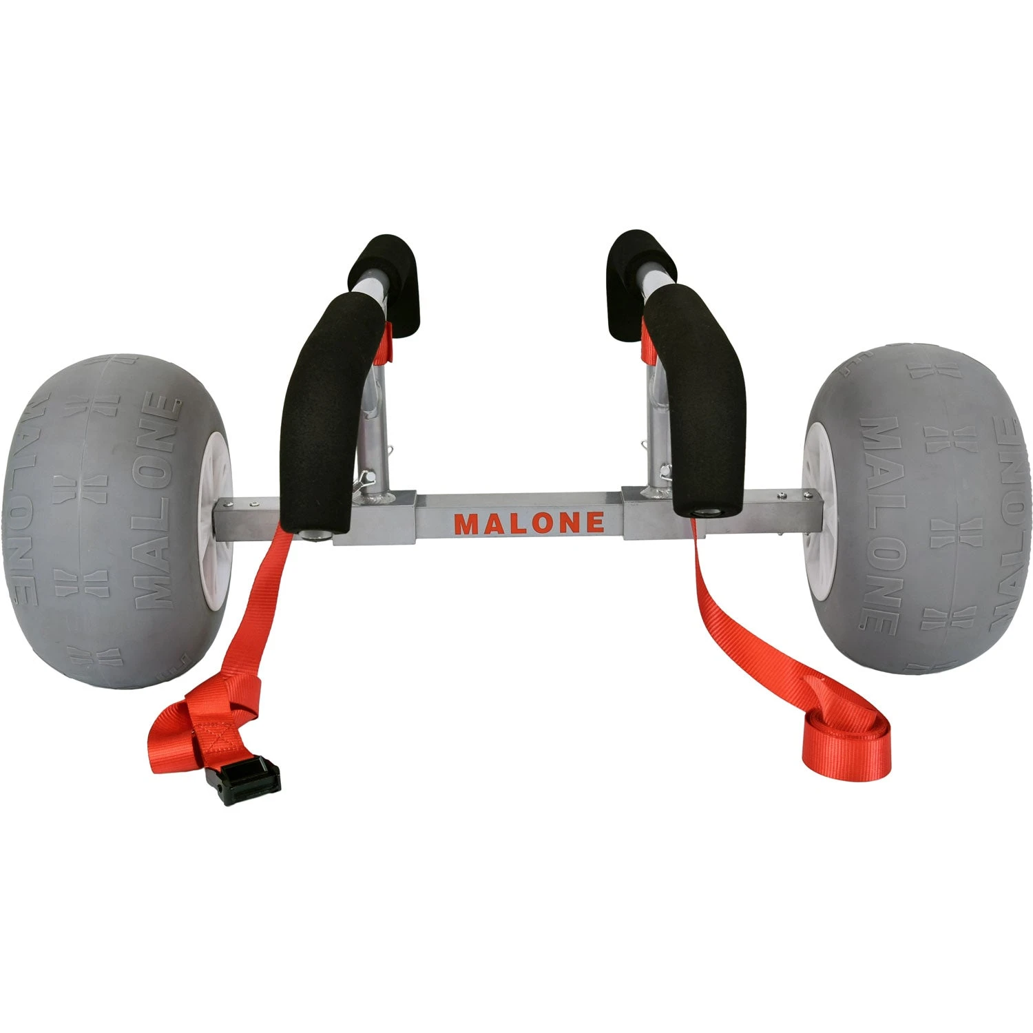 The Malone Traverse HD-S Balloon Wheel Kayak/Canoe Cart with balloon beach wheels feature new down slope adjustable bunks to improve handling. Fits most non-traditional hull types.