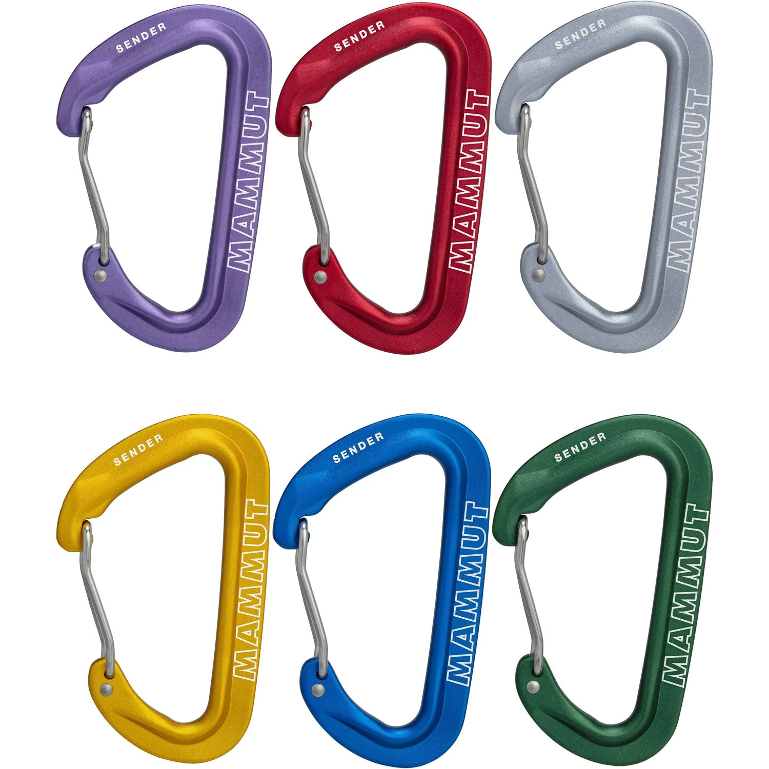 The Mammut Sender Wire Carabiner Rackpack is a pack of 6 Sender Wire carabiners for year-round use for trad climbing. The ultra-light carabiner offers top performance even in snow and ice and has less gate flutter and shutter.