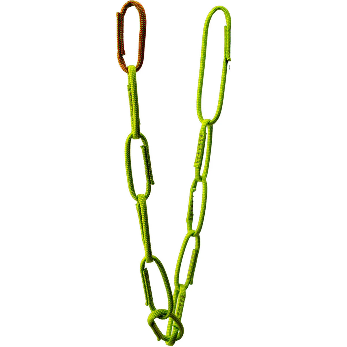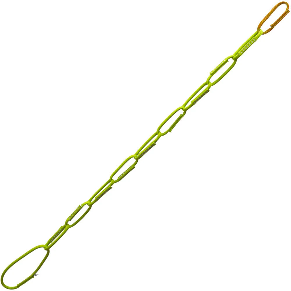 Rated to 15kN to eliminate the pocket failure problem of traditional daisy chains, the Metolius Dynamic Daisy Chain features a contrasting color on the end loop to simplify use.