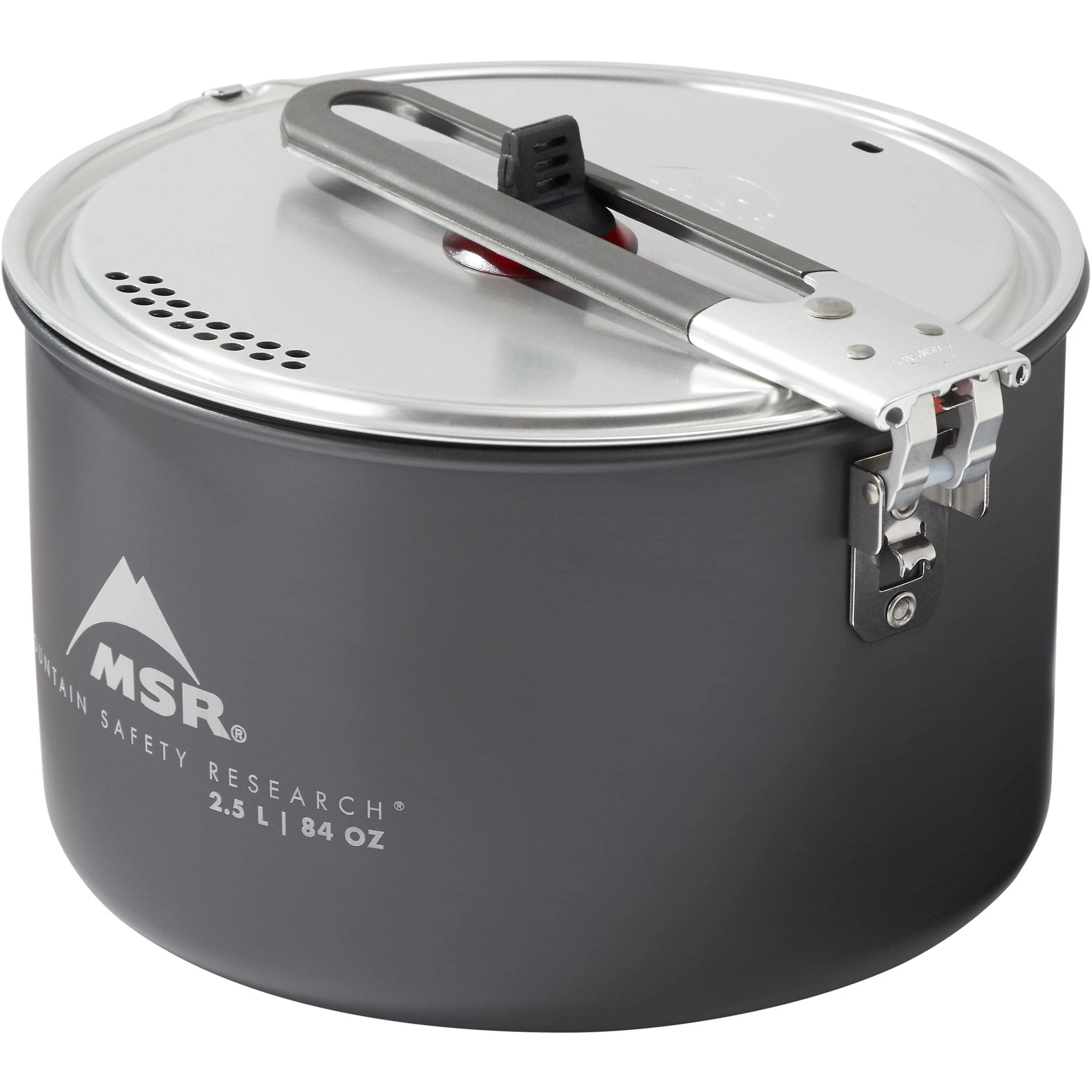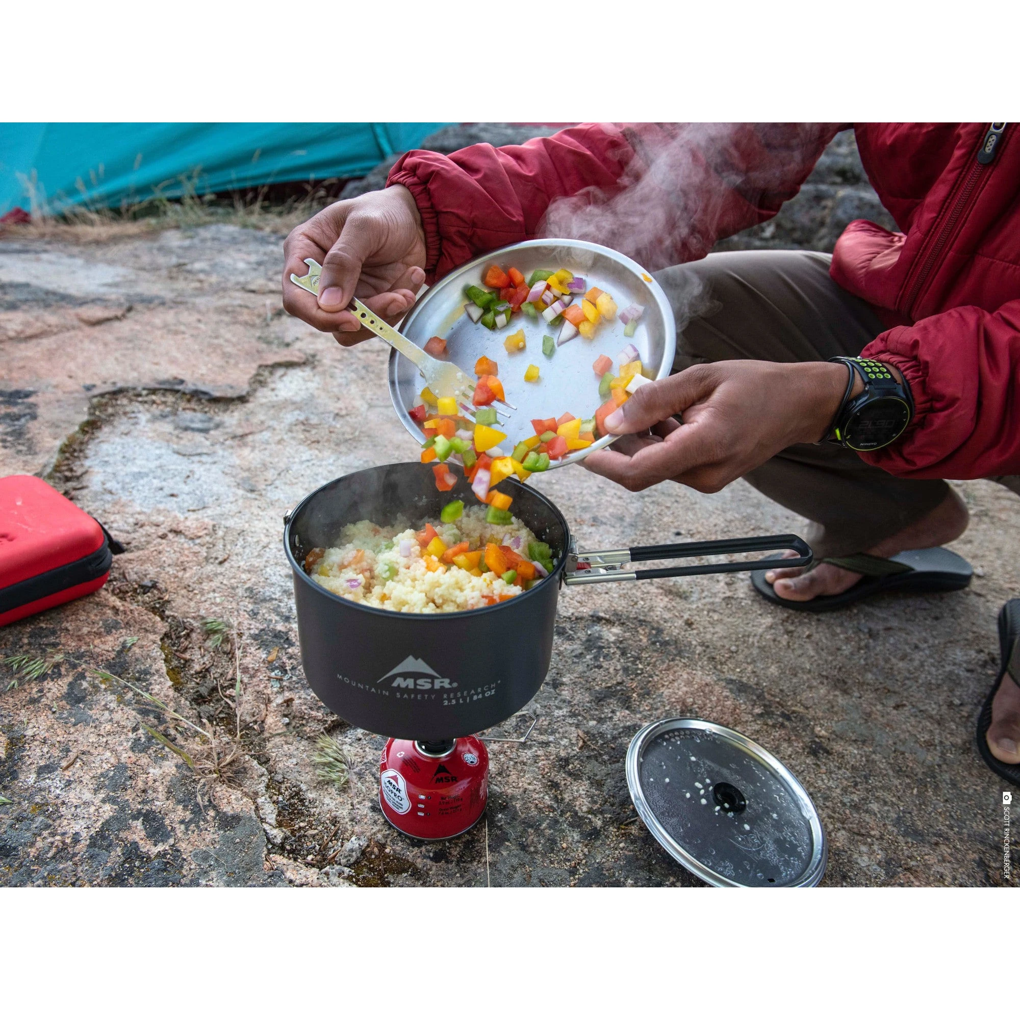 Featuring a durable ceramic nonstick surface for kitchen-quality performance, MSR’s larger aluminum MSR Ceramic 2.5 L Pot adds capacity for 2-4 people, snow-melting, and boiling water fast. The pot can nest up to three of MSR’s Insulated Mugs and two DeepDish plates.