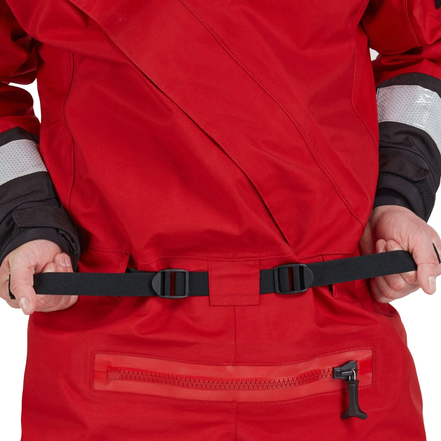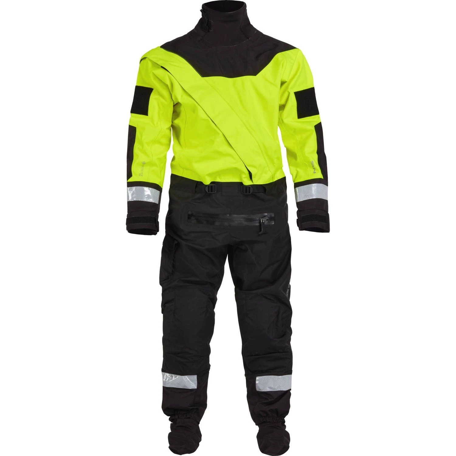Versatile and warm, the NRS Ascent SAR GORE-TEX Dry Suit aids in professional Swiftwater rescue operations. Its recycled GORE-TEX fabric provides comfort, warmth, and durability for diving in icy water while its flexible fabric offers mobility for dynamic movements.