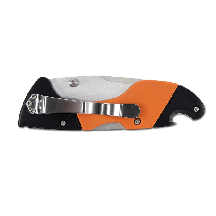 - Unique design includes an efficient rope-cutting hook at the knife’s blunt tip