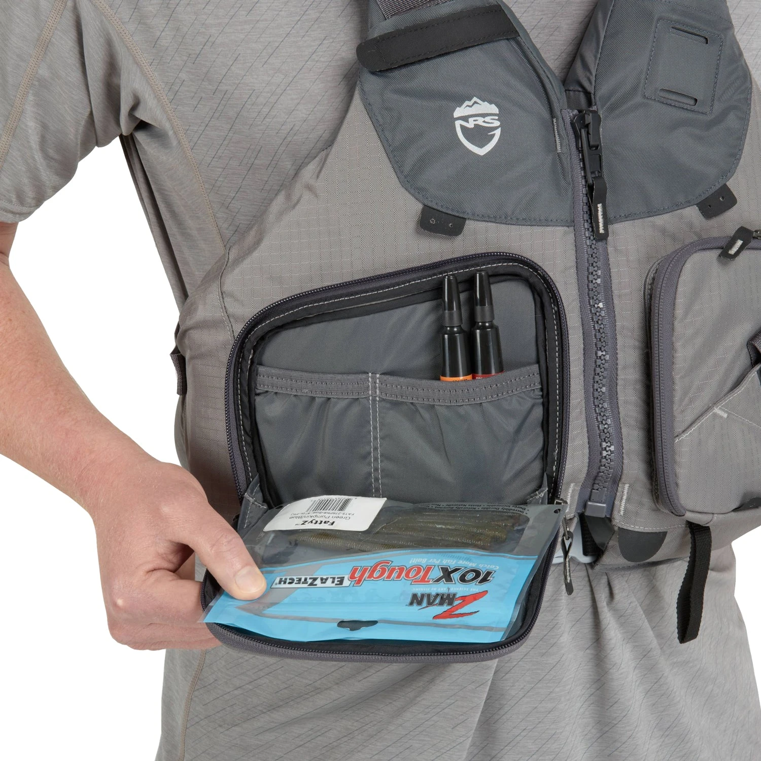 - A single, exterior pocket on the angler’s right side offers easily accessible storage