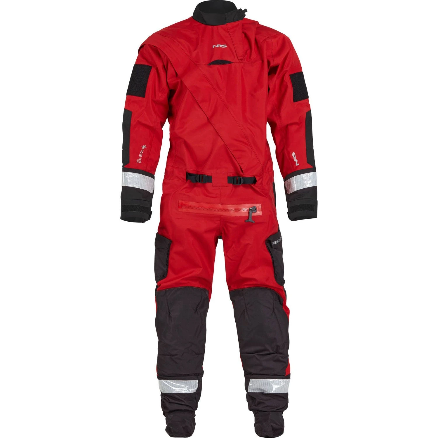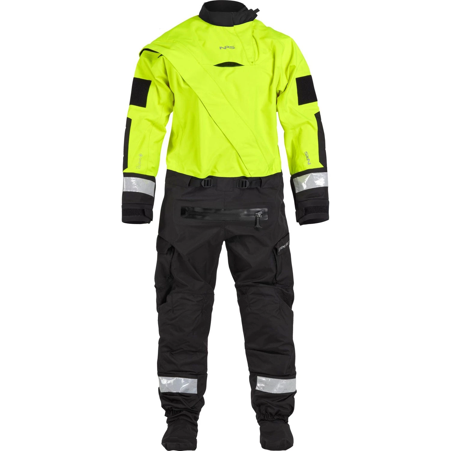 Versatile and warm, the NRS Extreme SAR GORE-TEX Pro Dry Suit aids in professional Swiftwater rescue operations. Its recycled GORE-TEX fabric provides excellent comfort, warmth, and durability for diving in icy water while its flexible fabric offers mobility for dynamic movements.