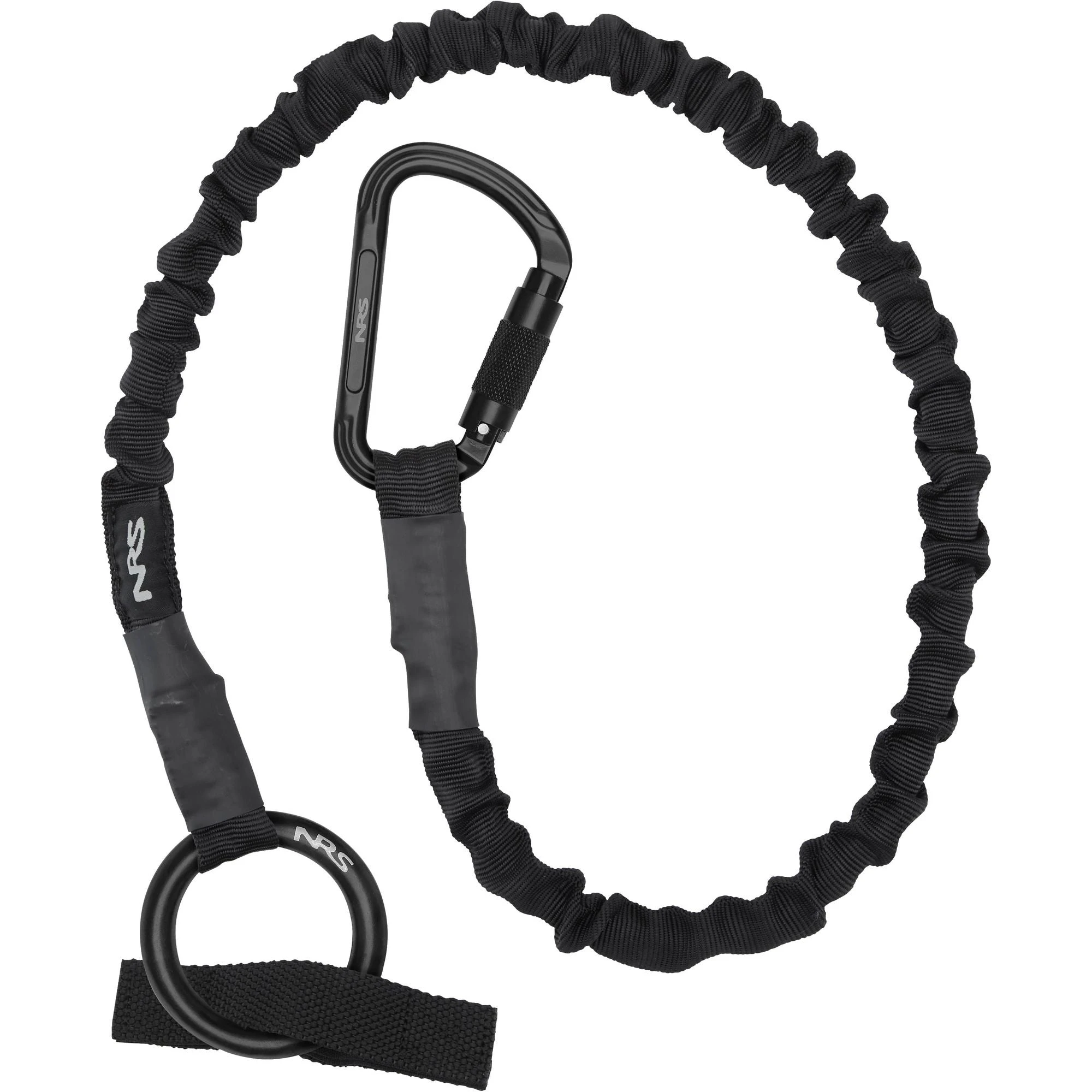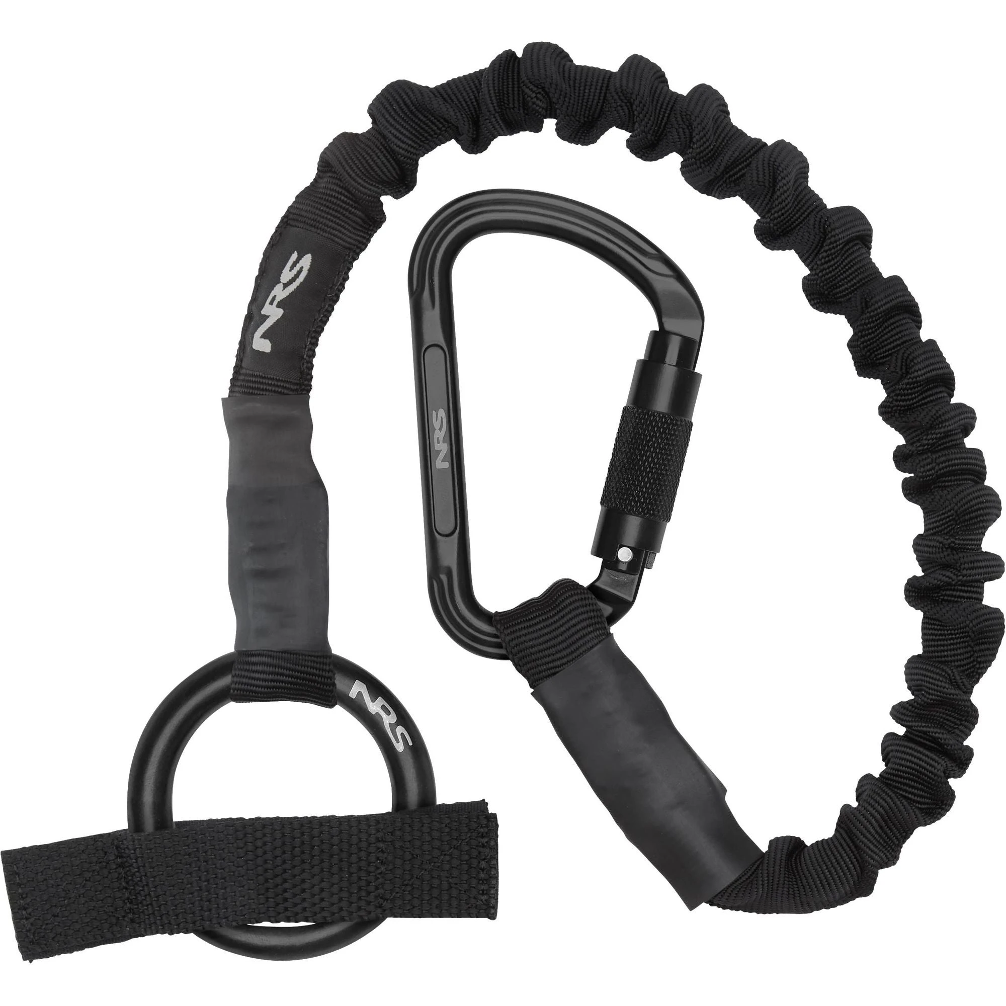 The strong NRS Kayak Tow Tether with Carabiner, with built-in bungee, is used with the quick-release harnesses on rescue life jackets.
