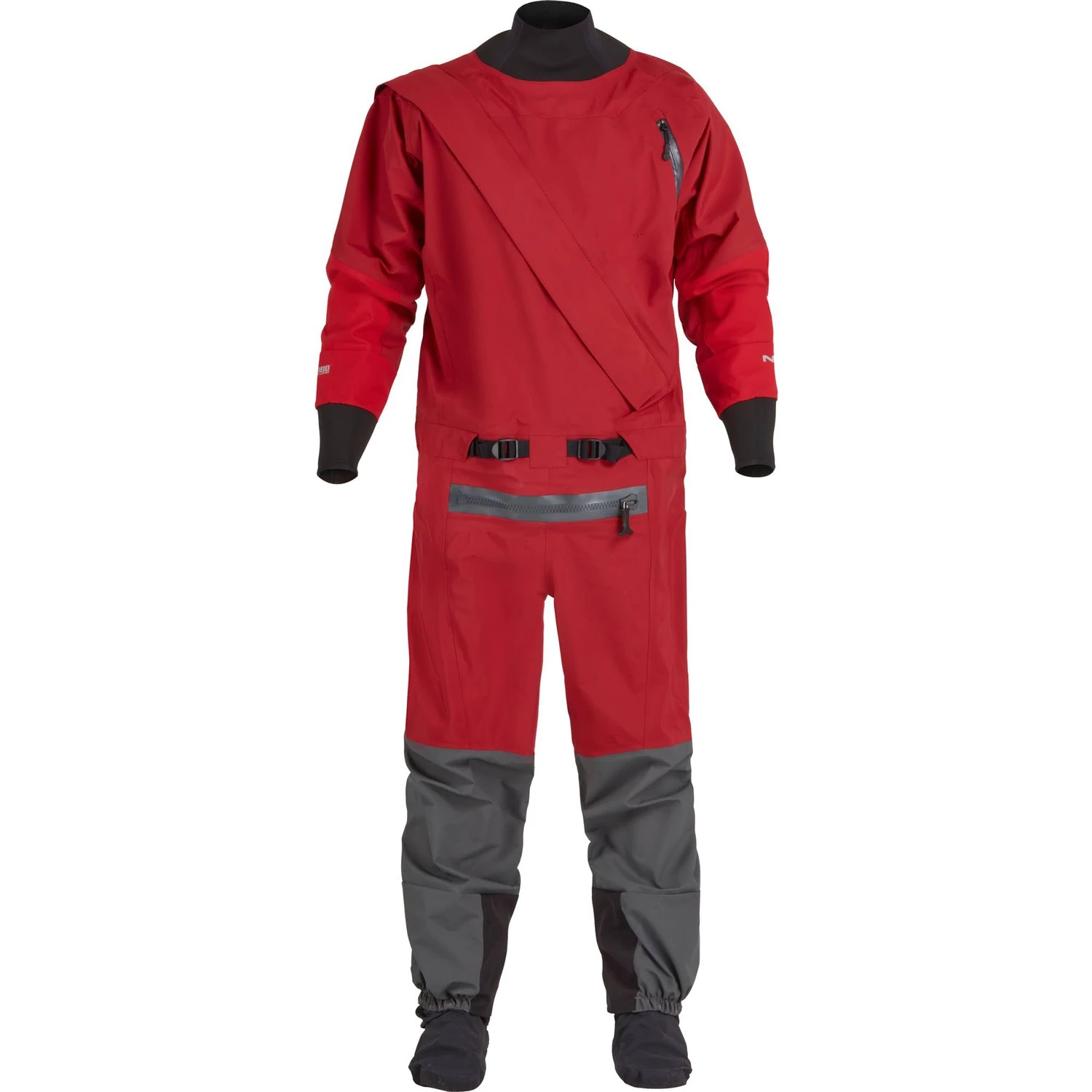The NRS Men’s Explorer Semi-Dry Suit is a streamlined design purpose-built suit to keep rafters and stand-up paddlers warm and dry without the unnecessary features of a standard kayaking drysuit. The punch-through neoprene GlideSkin comfort neck seal is a less restrictive alternative to latex.