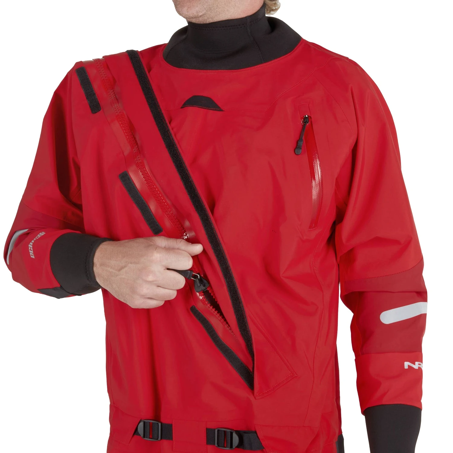 The NRS Men’s Foray Dry Suit has all the features of a traditional dry suit without the unnecessary bulk of an overskirt. The Foray is designed for rafters, stand-up paddlers and other boaters who are crushing it in cold water without stuffing themselves into small plastic boats.
