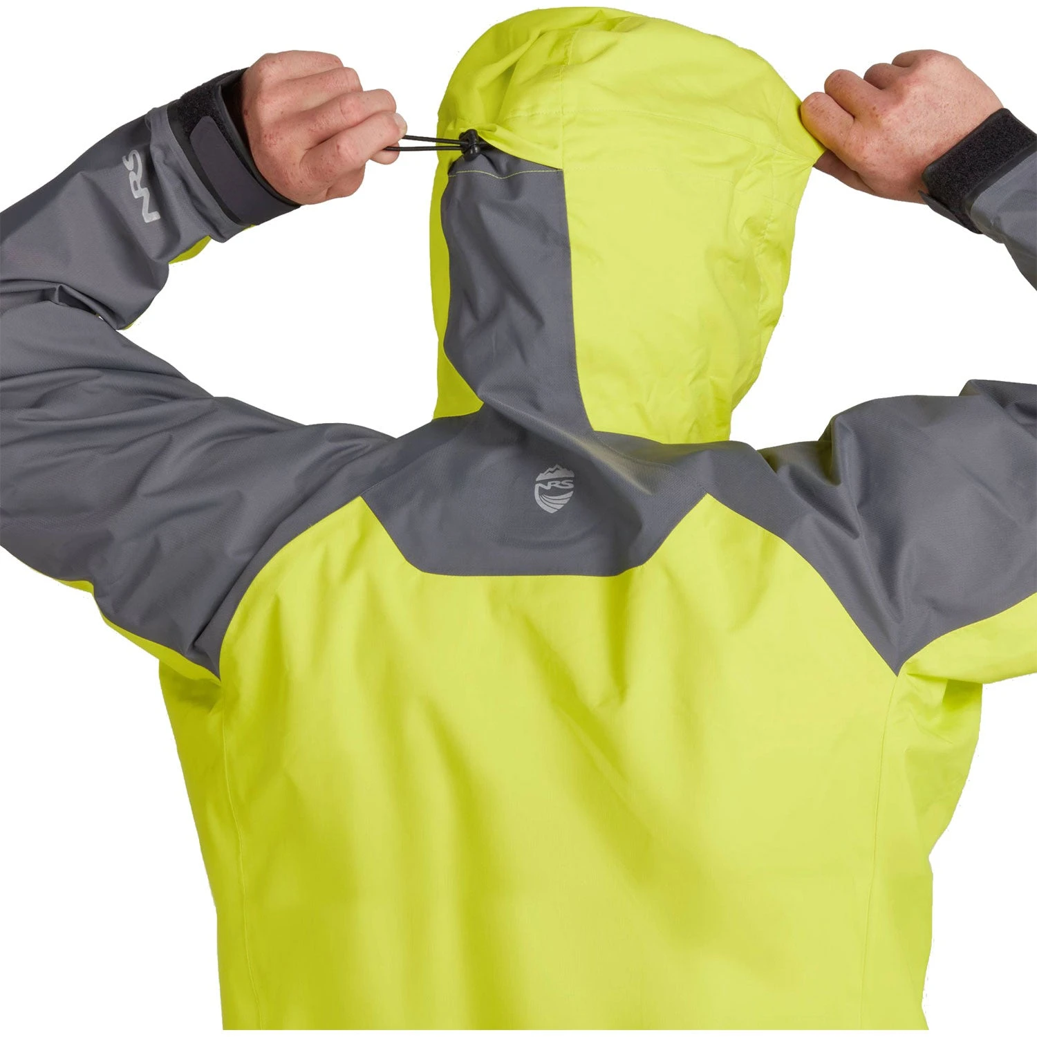 Waterproof and durable, the NRS Men’s High Tide Paddling Jacket safeguards against the wind, splash, and high tide while kayaking or canoeing on rough water. Manufactured from durable fabric, the jacket provides flexibility and comfort during demanding water sports.