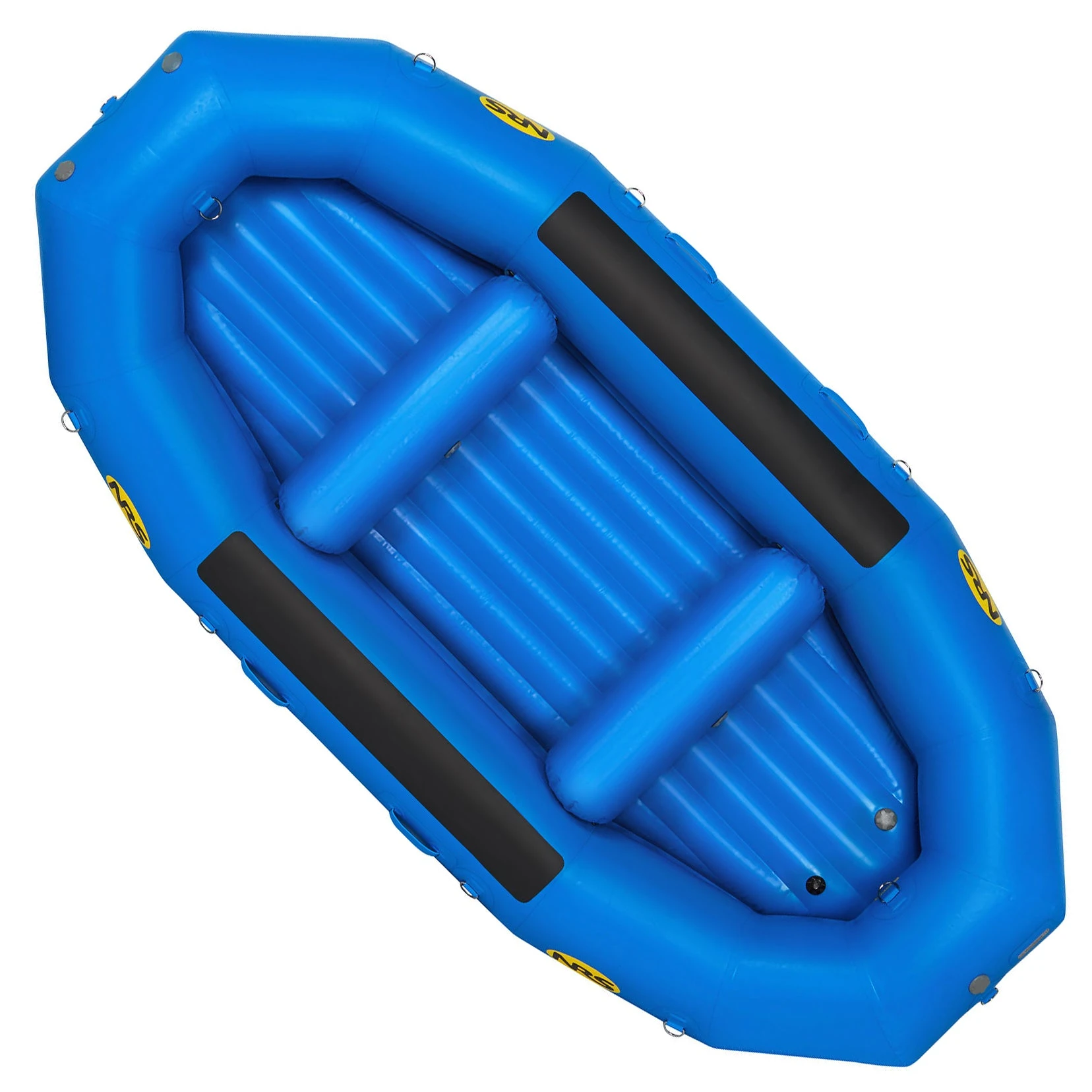 The NRS Otter 120D self-bailing raft uses a slightly diminished tube design, opening up more room in the end compartments and allowing better placement of thwarts for paddlers. The Otter 120D makes a great small-river fishing boat or the perfect compact paddle raft.