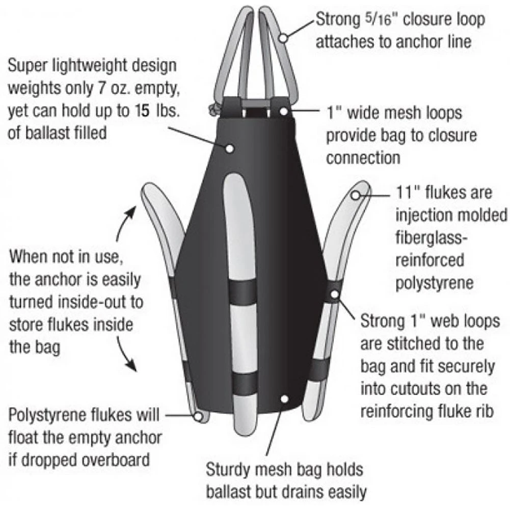 - Pear-shaped design causes the flukes to spread when the bag is filled for bottom-grabbing traction