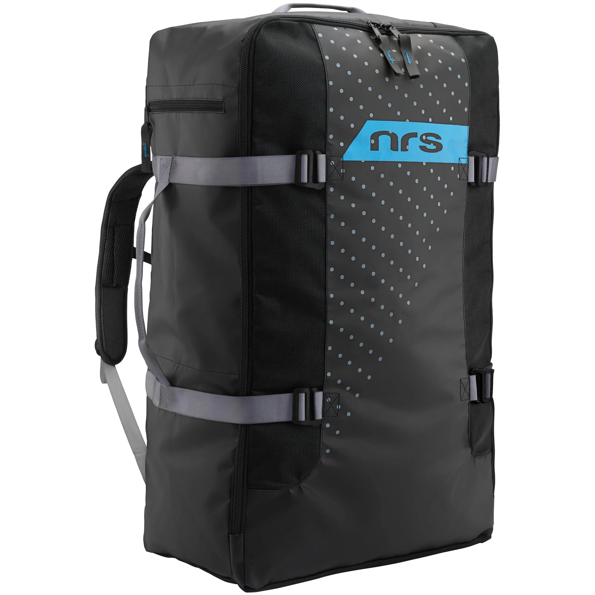 The NRS SUP Board Travel Pack is for the paddler that loves to travel and charges the most rugged terrain and outlast exhausting itineraries, the durable SUP Board Travel Pack can fit a folded inflatable SUP, 3-piece breakdown paddle and pump, as well as the accessories needed to get on the water.
