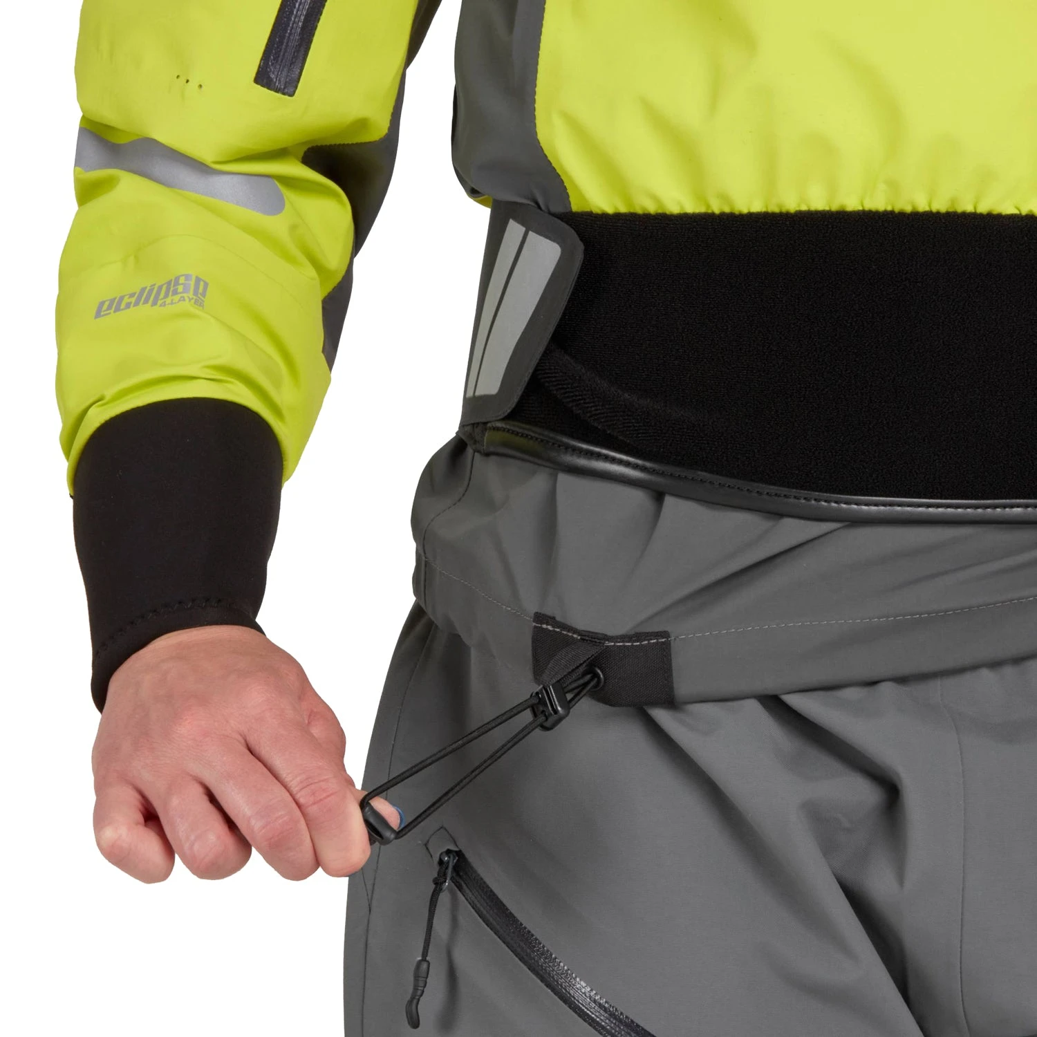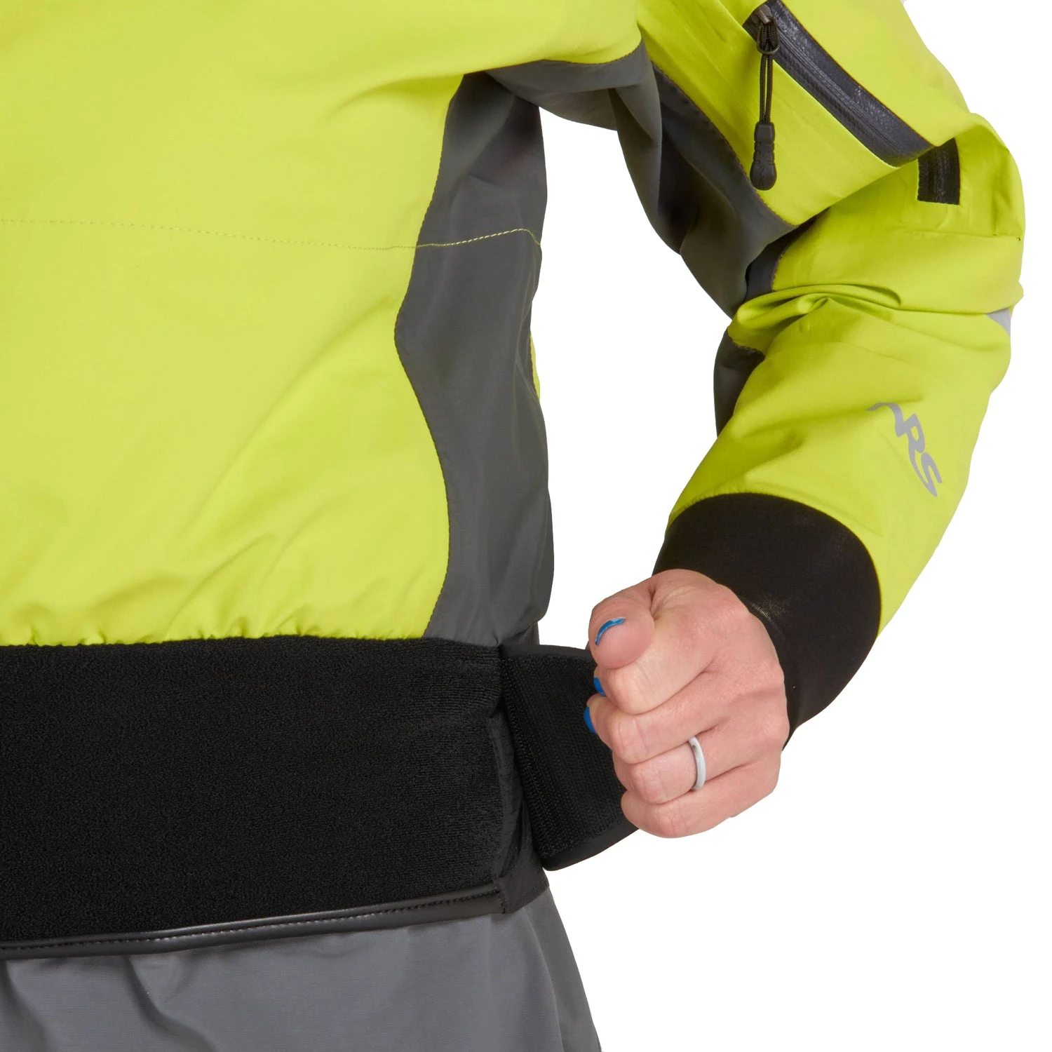 - Wrist cuffs are reinforced with extended neoprene protection to keep arms dryer