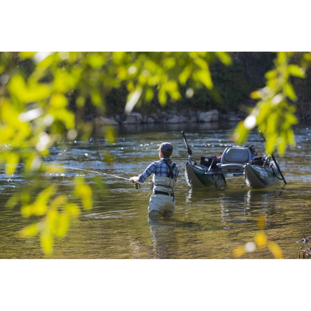- Fold-down seat and adjustable footrests provide a solid casting & rowing platform