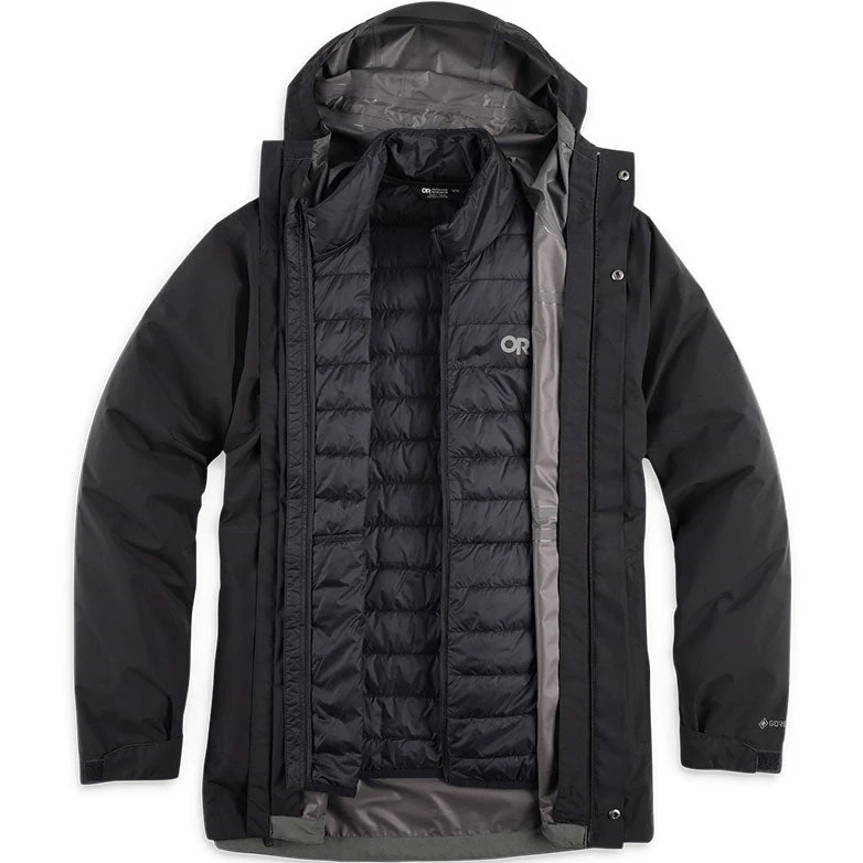 The Outdoor Research Men’s Foray 3-in-1 Parka is a multifaceted jacket for a range of outdoor weather situations. The GORE-TEX shell on its own is a waterproof, breathable rain jacket, so you can take on the wet weather, even the snow, without getting soaked to the bone.