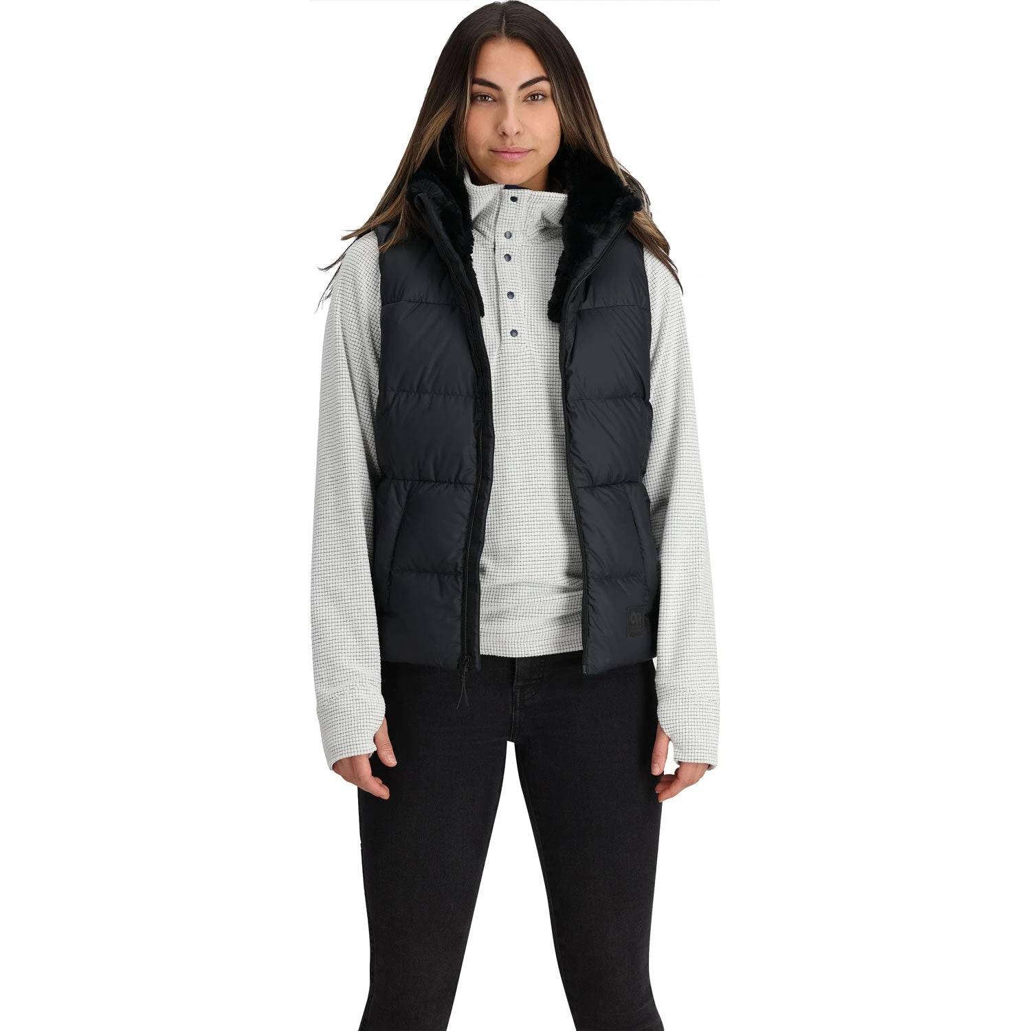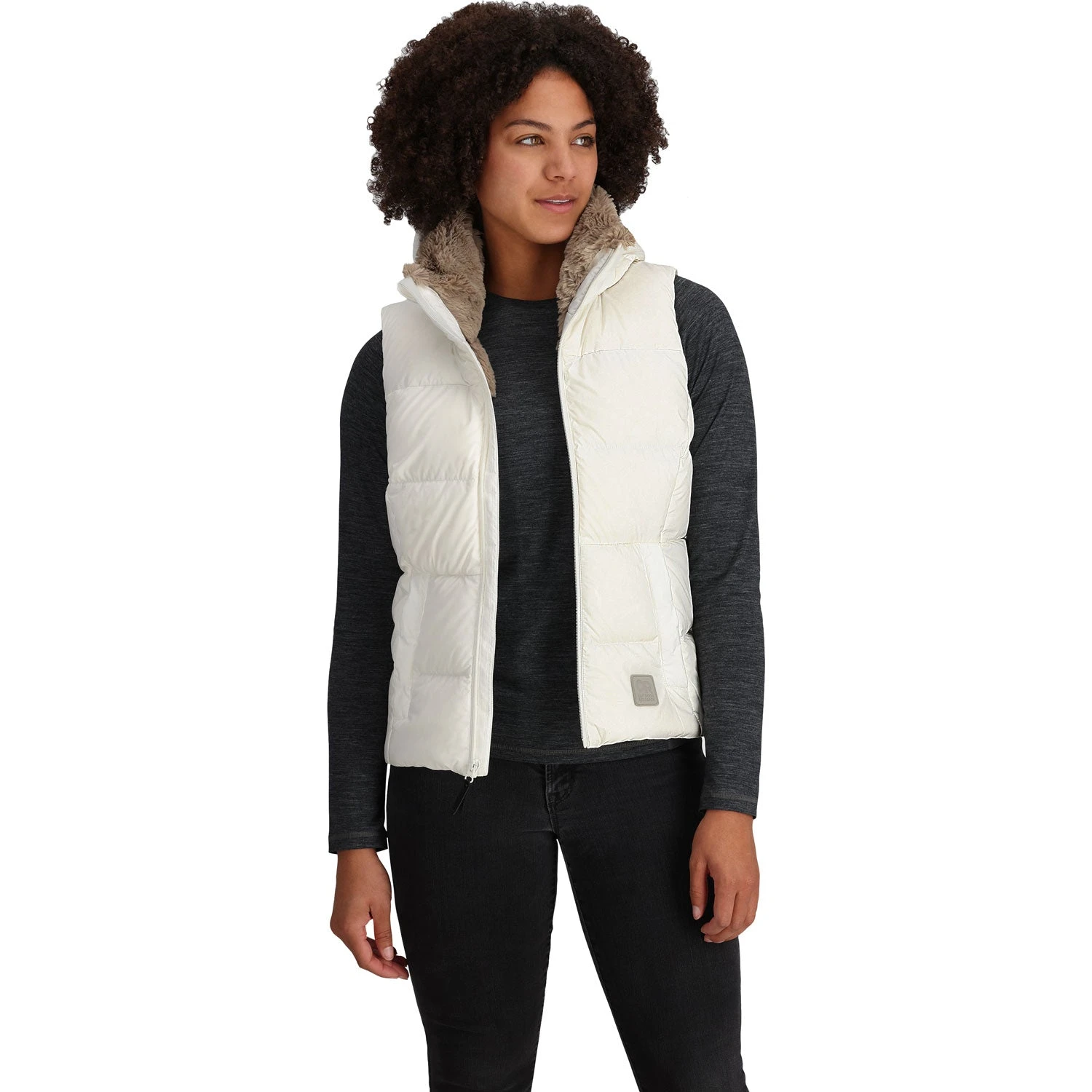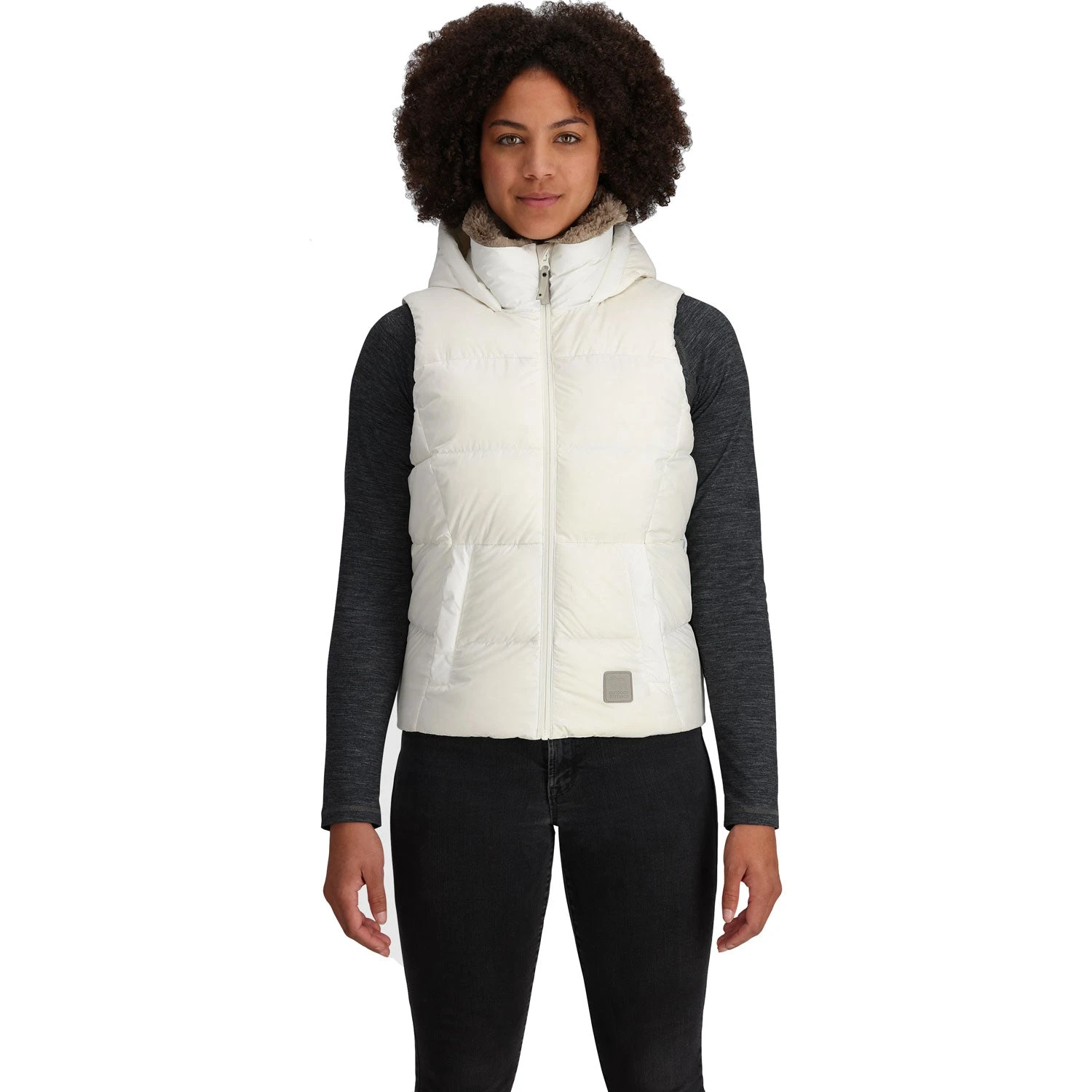 The Outdoor Research Women’s Coldfront Hooded Down Vest II is a down insulated vest for crushing errands and hikes through fall and winter weather. When you need more than a long sleeve, but desire more movement through the arms than a jacket often provides.