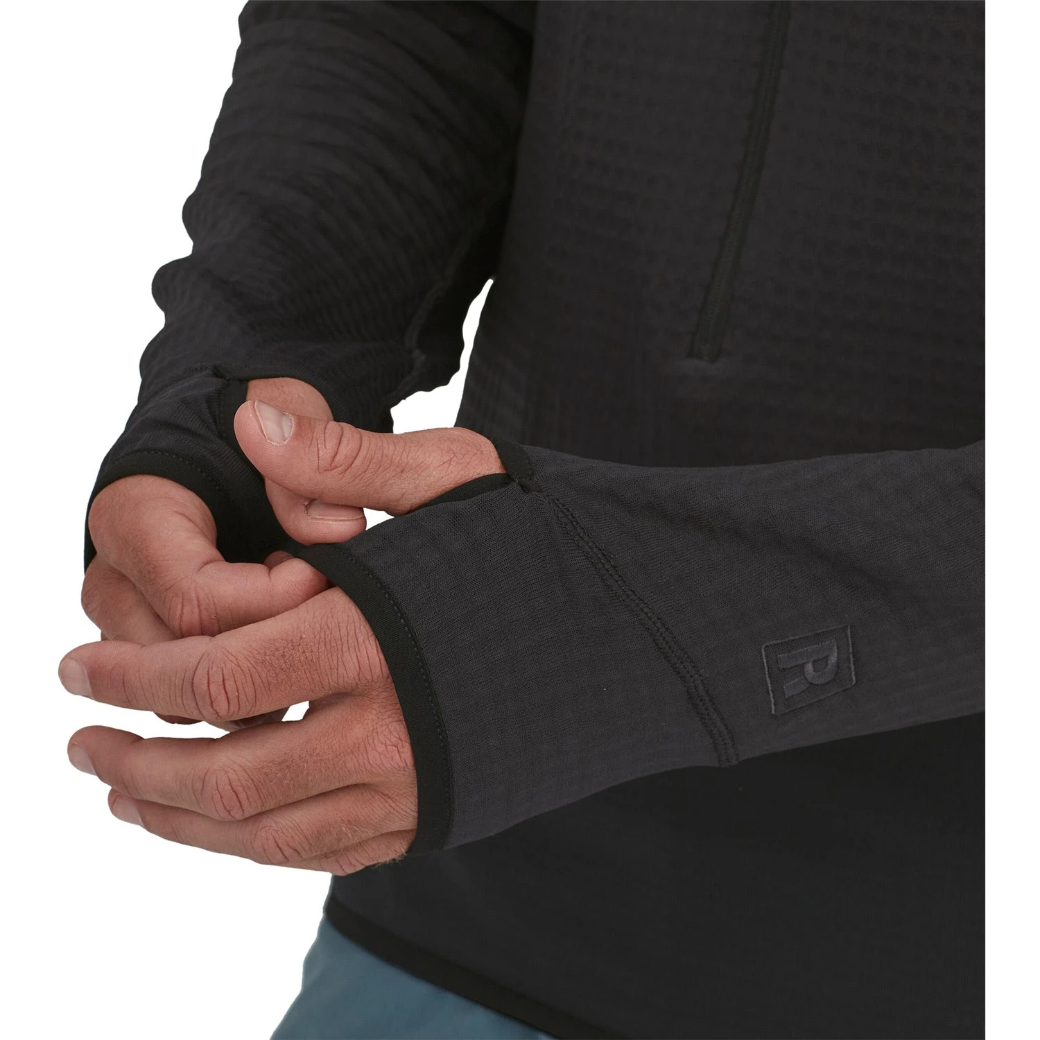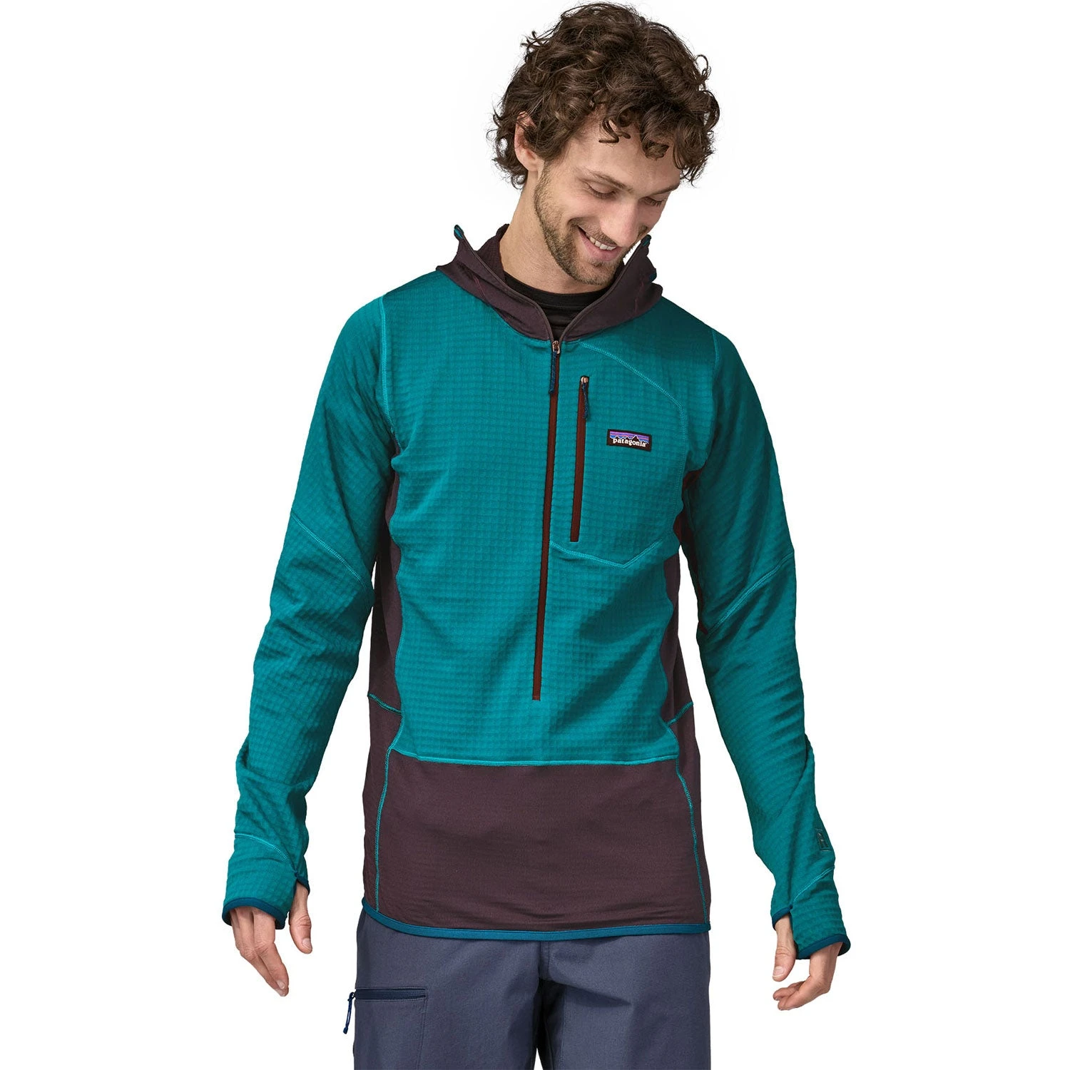 The Patagonia Men’s R1 Pullover Hoody is a versatile, technical, midlayer fleece for stop/start activities in cold conditions. Made from a blend of recycled polyester and spandex, and constructed in a classic grid pattern to trap heat and wick moisture.