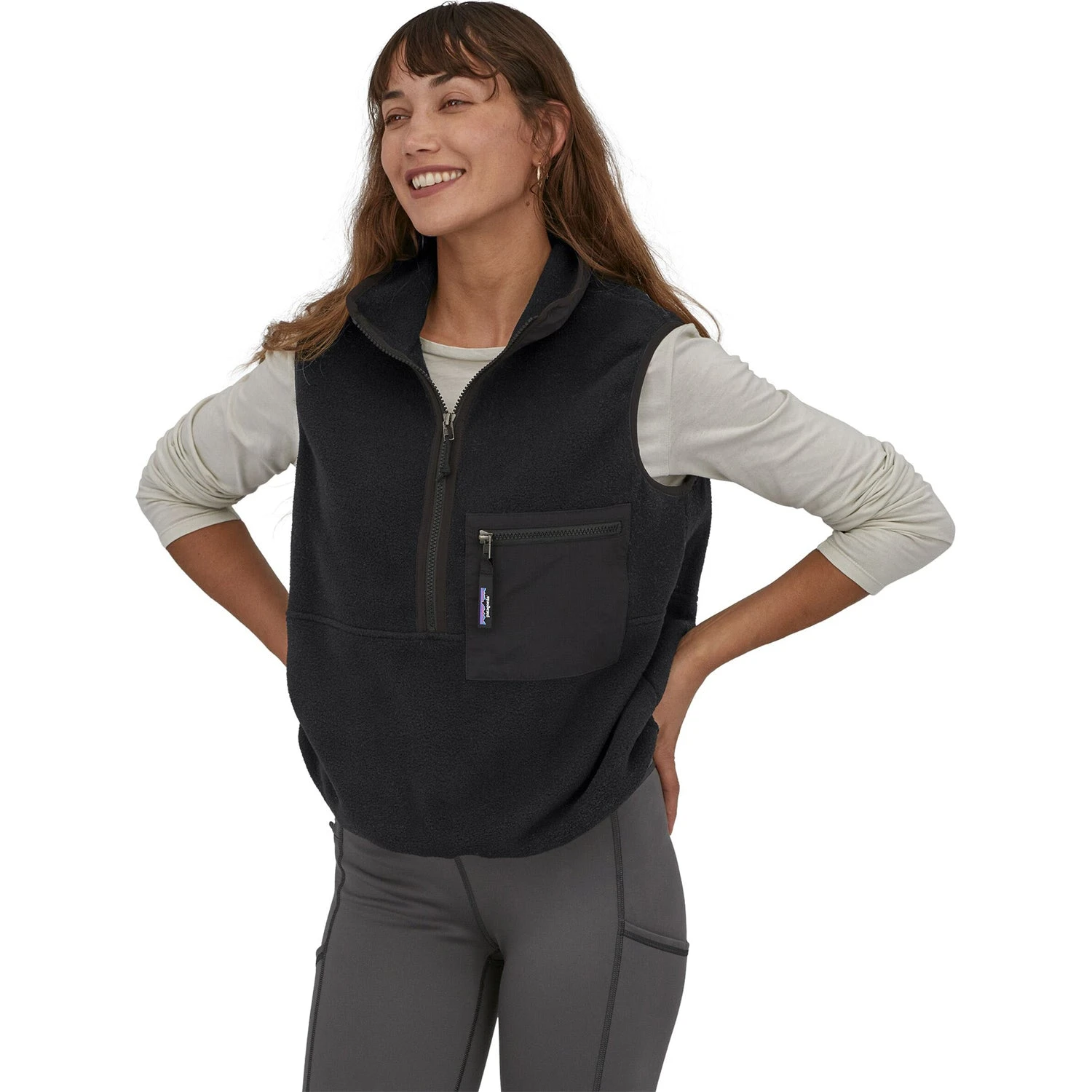 The Patagonia Women’s Synchilla Vest is made from recycled polyester fleece in a simple jacket style. Made from a double-sided fleece, this soft jacket keeps the cold away whether you’re getting an early start at a popular trailhead or watching the sun set from the top of Signal Mountain.