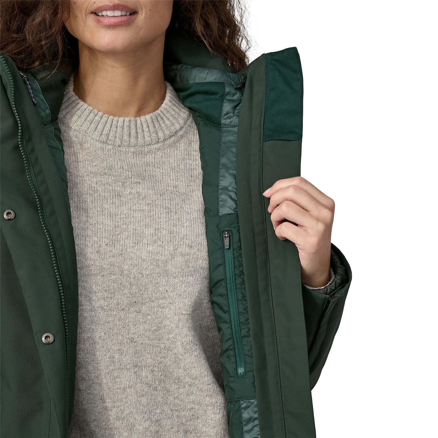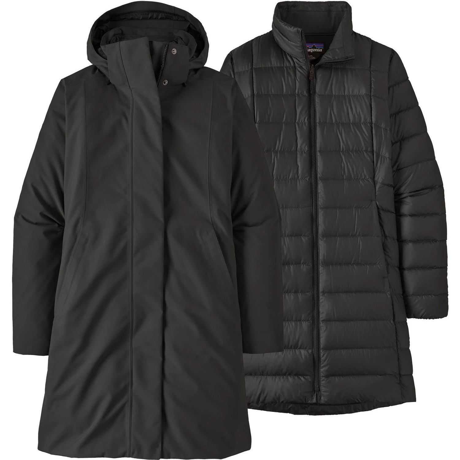- Two-way storm flap zippers are secured with hidden snaps to lock out the cold