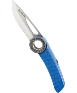 The Petzl Spatha Clippable Knife is designed to accompany the climber on every outing. The profile of the blade allows easy cutting of ropes and cordage. It has a carabiner hole for attaching the knife to the harness. It is easy to manipulate with its textured wheel, even when wearing gloves.