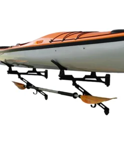 The Rack-It-Up Kayak Storage Rack has adjustable padded cradles that slide and tilt to conform to your kayak for a perfect fit. Designed for touring kayaks and surf skis, the rack’s support arms also provide perfect storage for paddles and doubles as a hanger for life jackets and more!