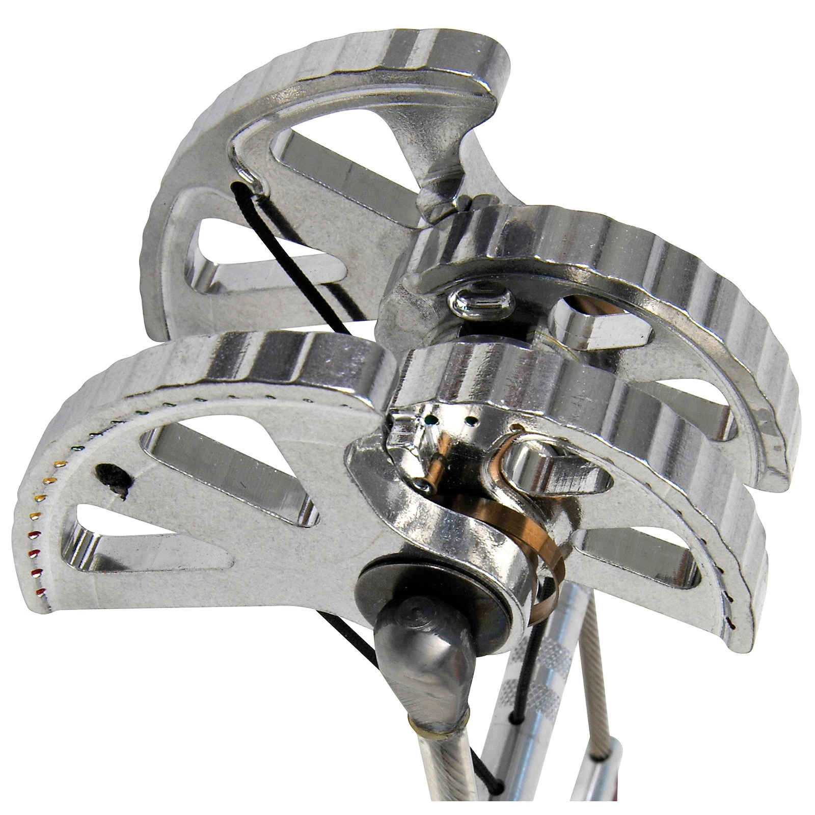 The Metolius Supercam features an optimized cam angle and a wider cam face for greater holding power. The cam lobe gives almost twice the range of conventional cams, and they are more stable than symmetric cams of the same size. The U-shaped body provides greater durability and control.
