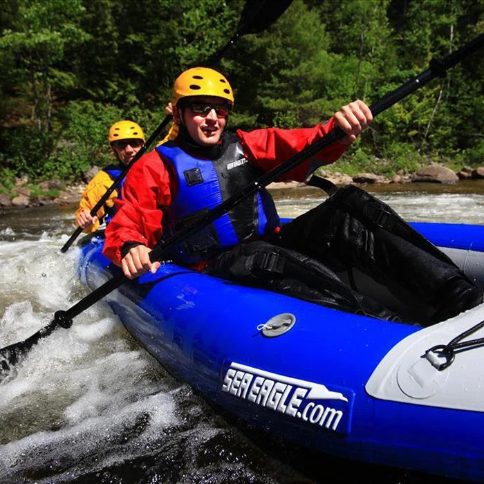 The Sea Eagle Explorer 420X Inflatable Kayak is the kayak for you if you plan on camping, overnight trips or just plain need the extra storage space. A great wet or dry boat, it is tough enough for class four whitewater, but stable, dry and comfortable on flatwater as well.