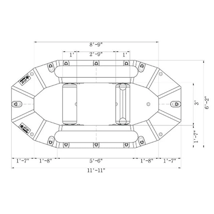 - 5-panel symmetrical raft construction w/ 4 tube air chambers