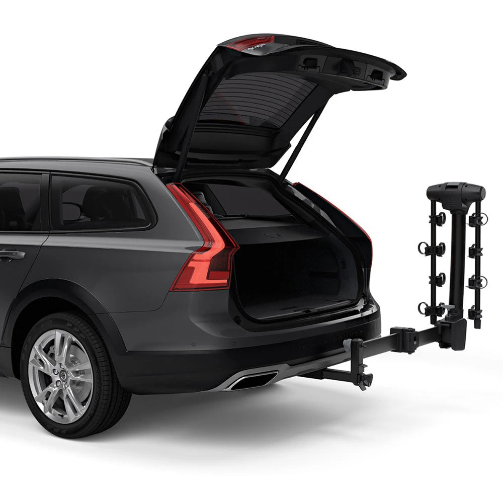 The Thule Apex XT Swing 4 premium hanging hitch bike rack provides superior bike protection and unobstructed access to the rear of vehicle. The rack’s bike arms easily fold down when Apex XT is not in use.