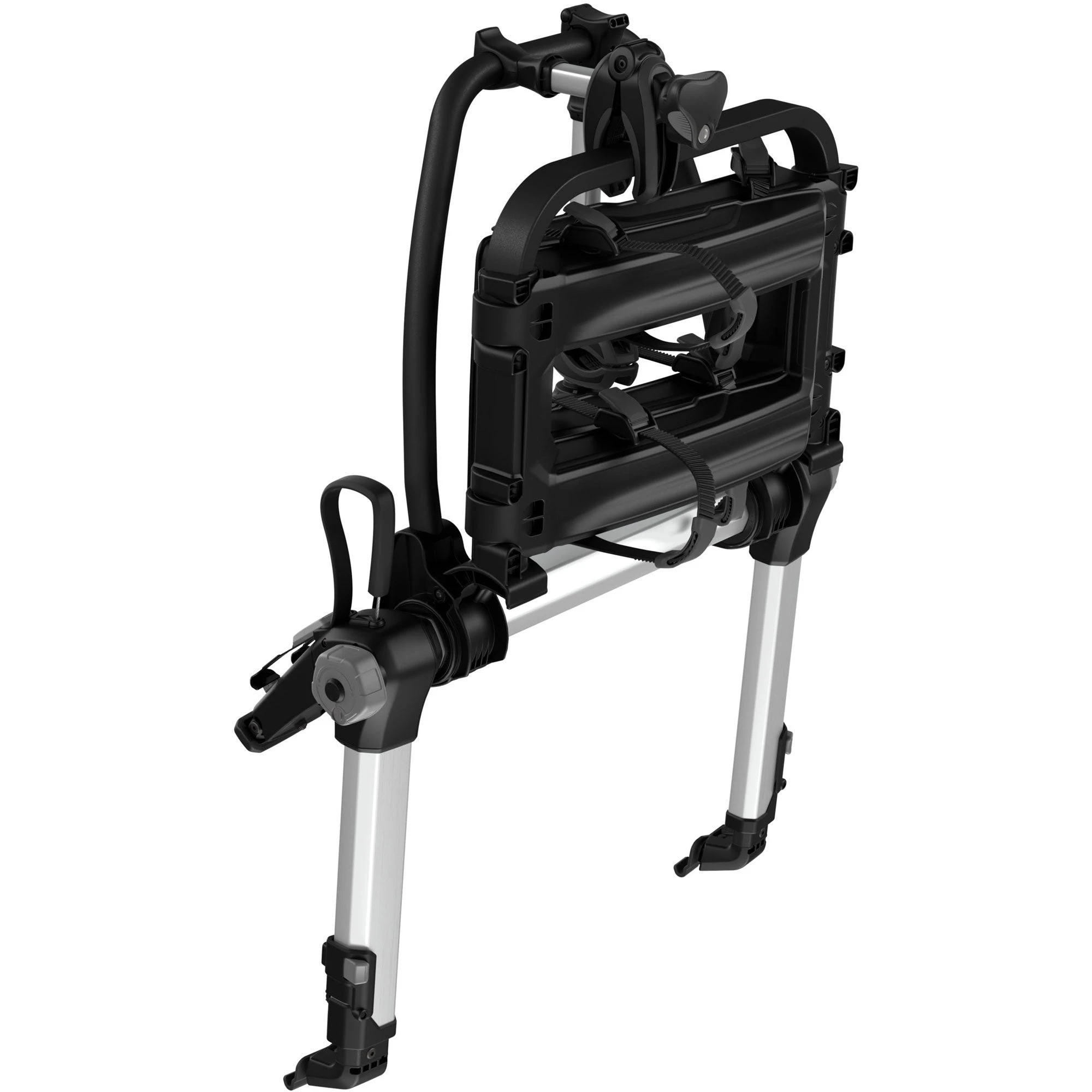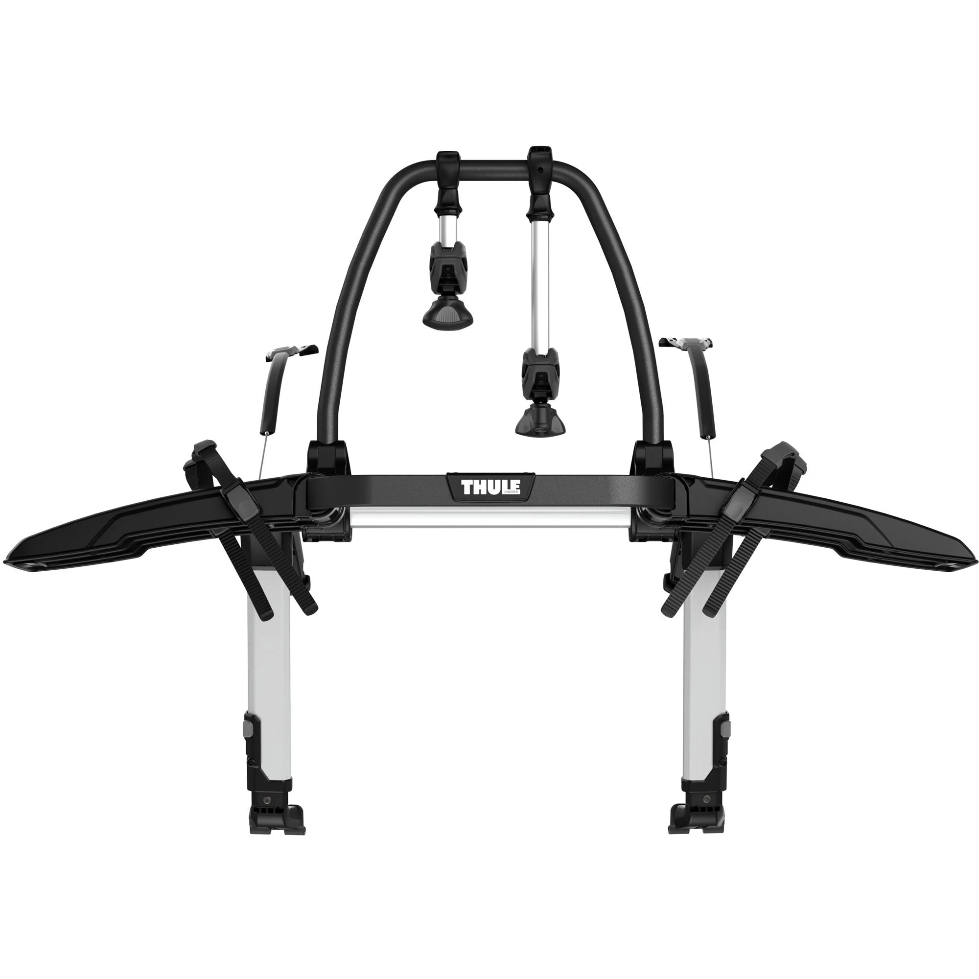 The Thule OutWay Platform 2 Bike Trunk Rack provides ultimate stability with the adjustable padded bike frame clamps that keep bikes well separated. Improves visibility of rear lights and license plate with raised platform design.