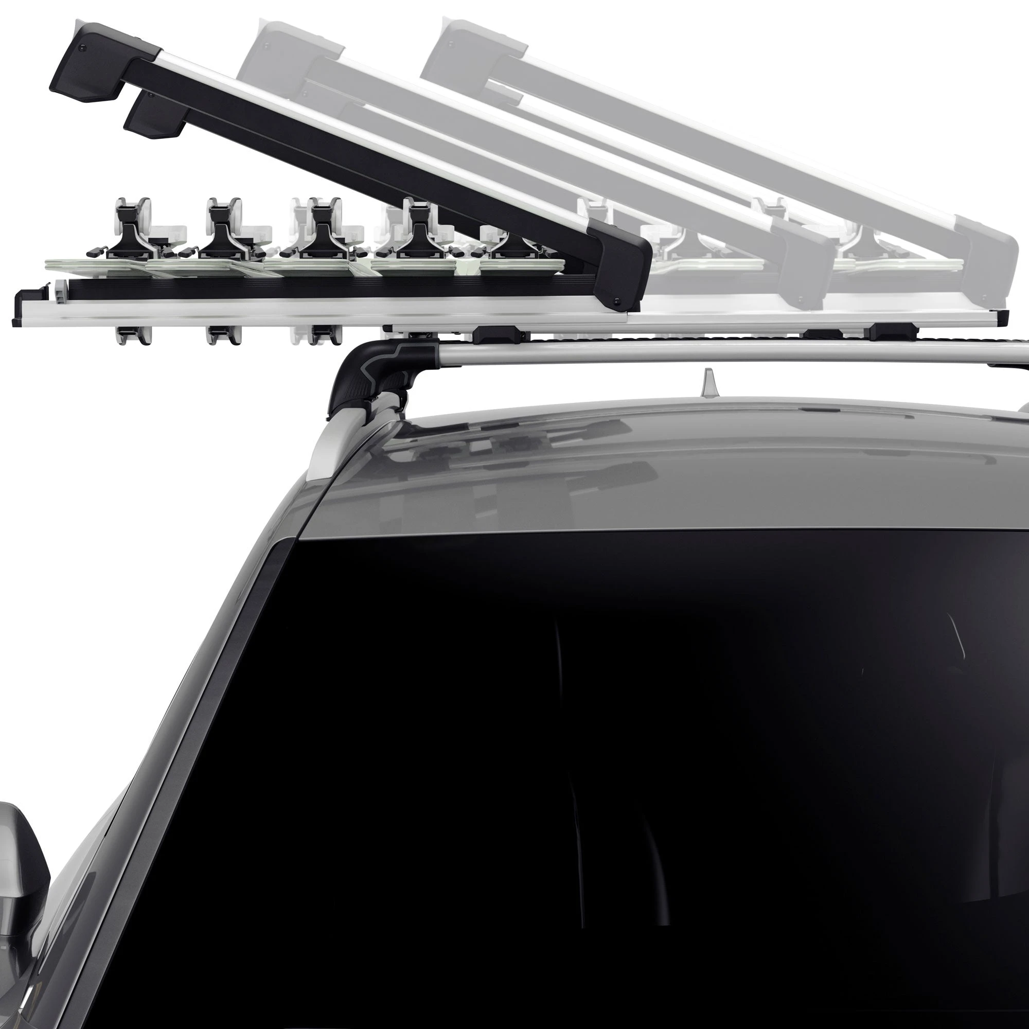 The Thule SnowPack Extender is an aerodynamic slide-out rack for convenient loading and unloading of skis and snowboards. With room for a combination of skis and snowboards, the SnowPack Extender rack lets you pack some friends along for an awesome day of slashing through powder.