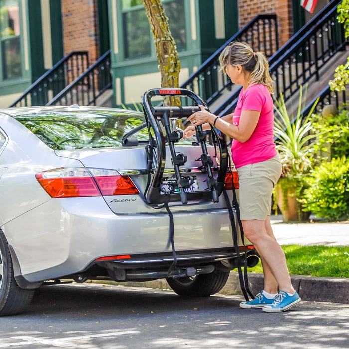 The Yakima FullBack 3 Bike Trunk Rack is full on features but still easy on the wallet. A fresher take on the classic strap rack, it securely holds your bike, is simple and easy to use, and stores and installs easily. The rugged construction and modern design are as cool as your ride.